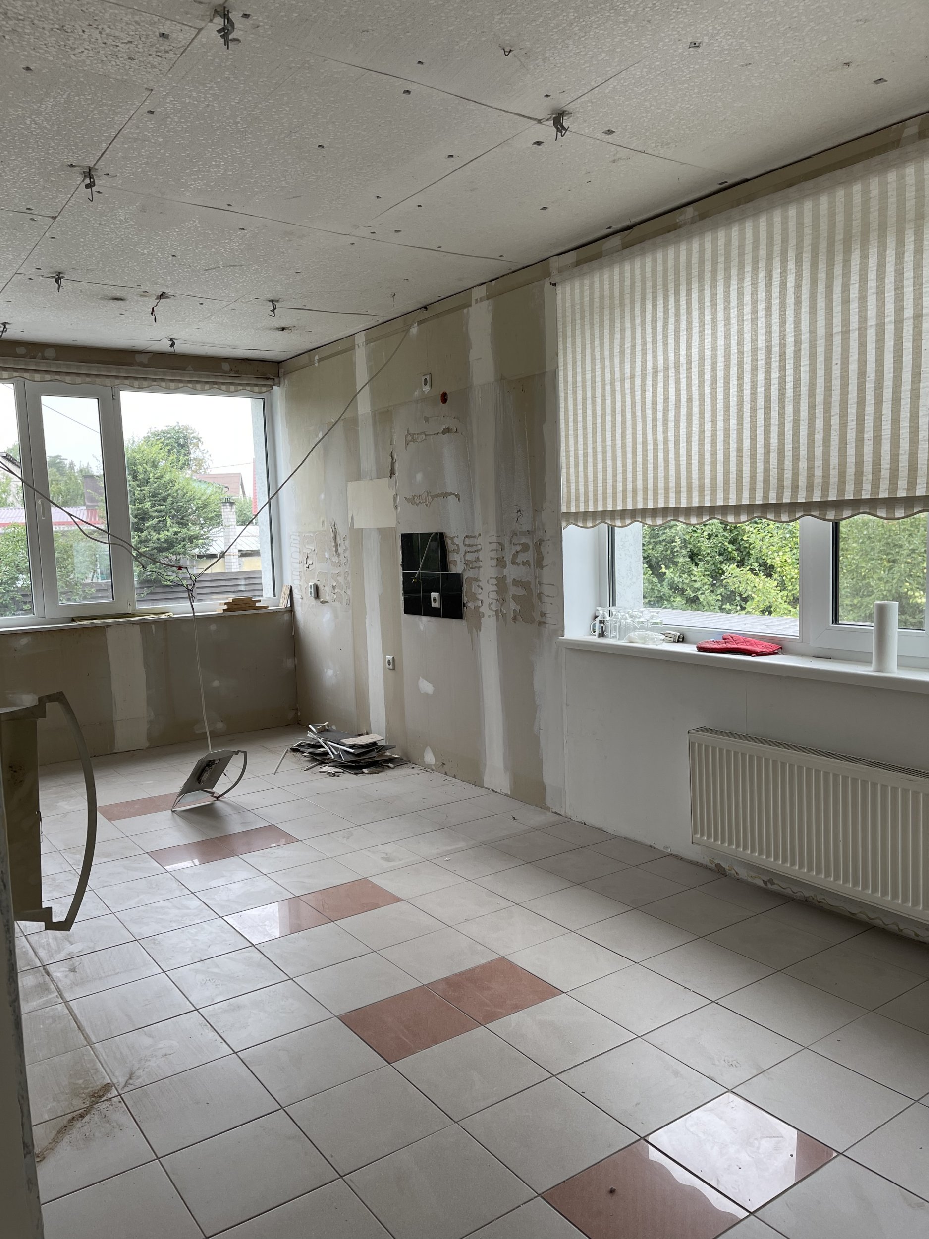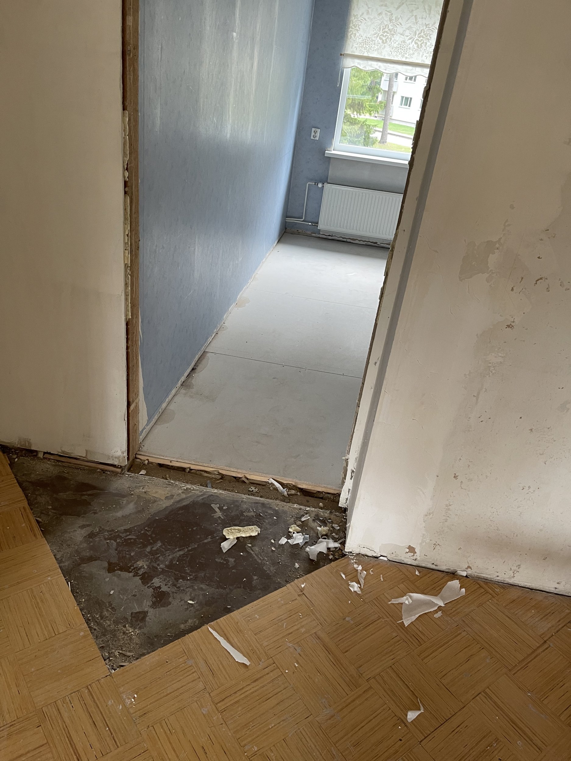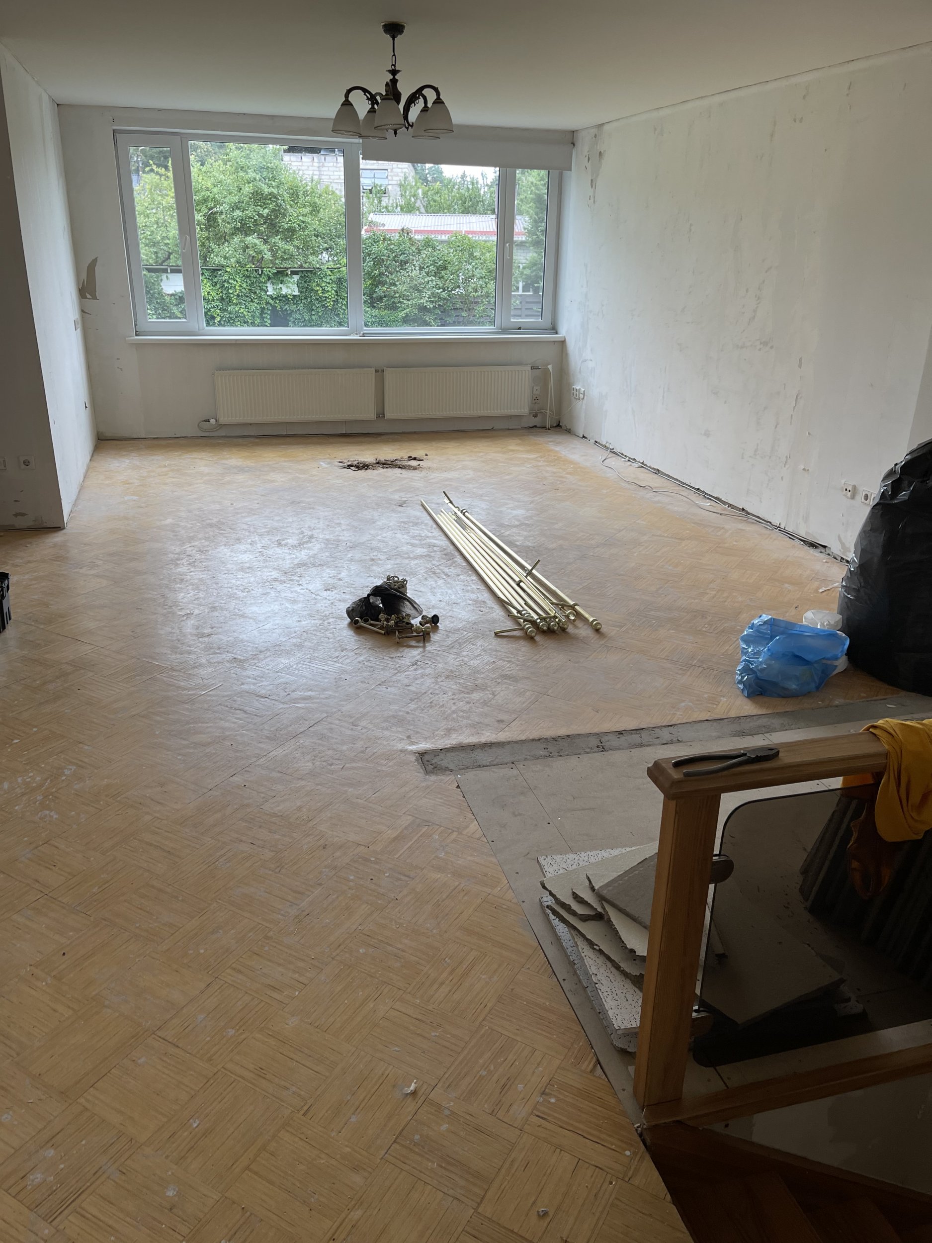 Vaja on piikida põrandaid, eemaldada radiaatoreid, lõhkuda mõned kipsist seinad, eemaldada tapeeti, lõhkuda san ruumidest välja kogu keraamiline plaat, lõhkuda sanruumi laed, (san ruume on 3), jms.
