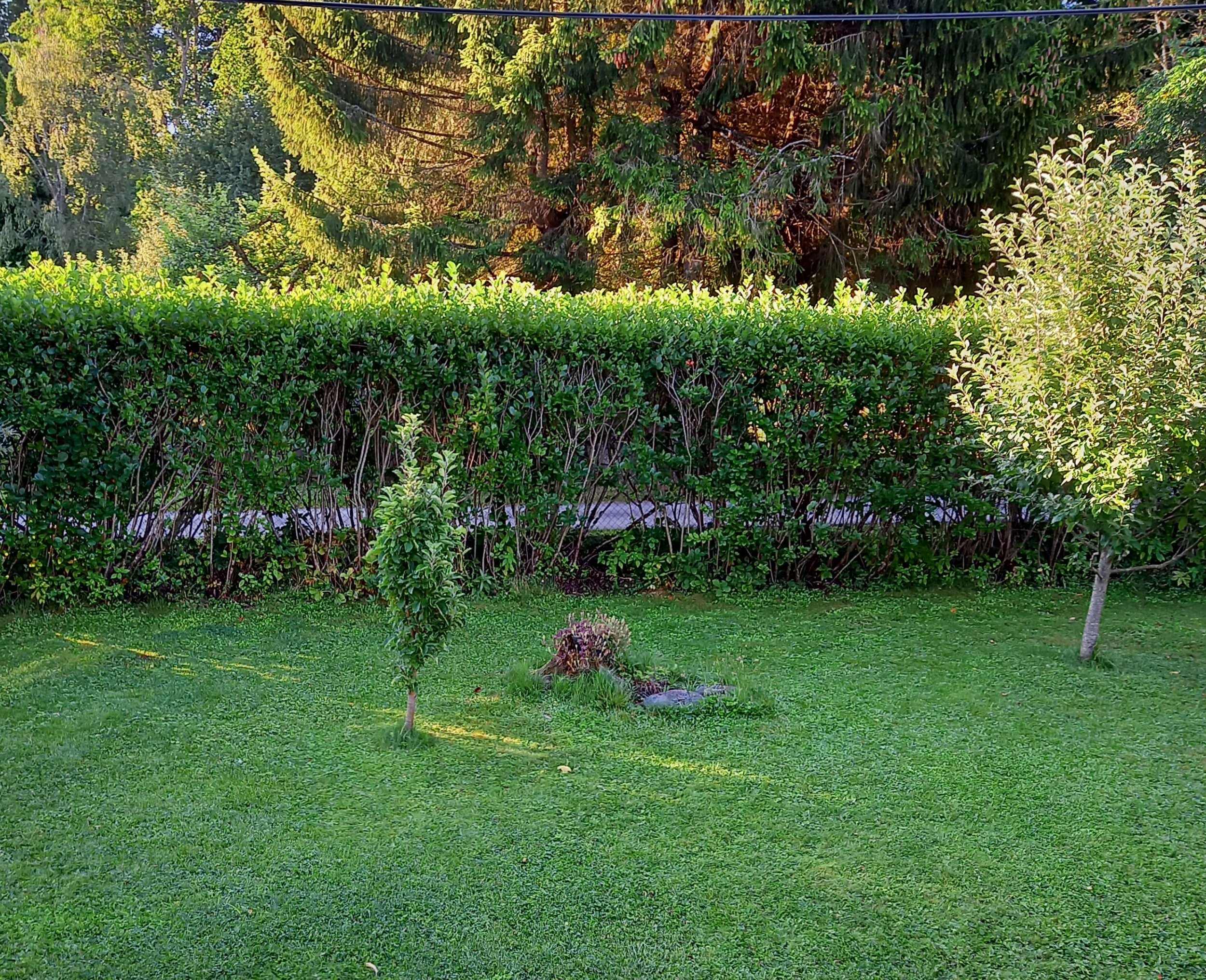 Arooniaheki pügamine, heki pikkus ca 40m ja kõrgus üle 2m.