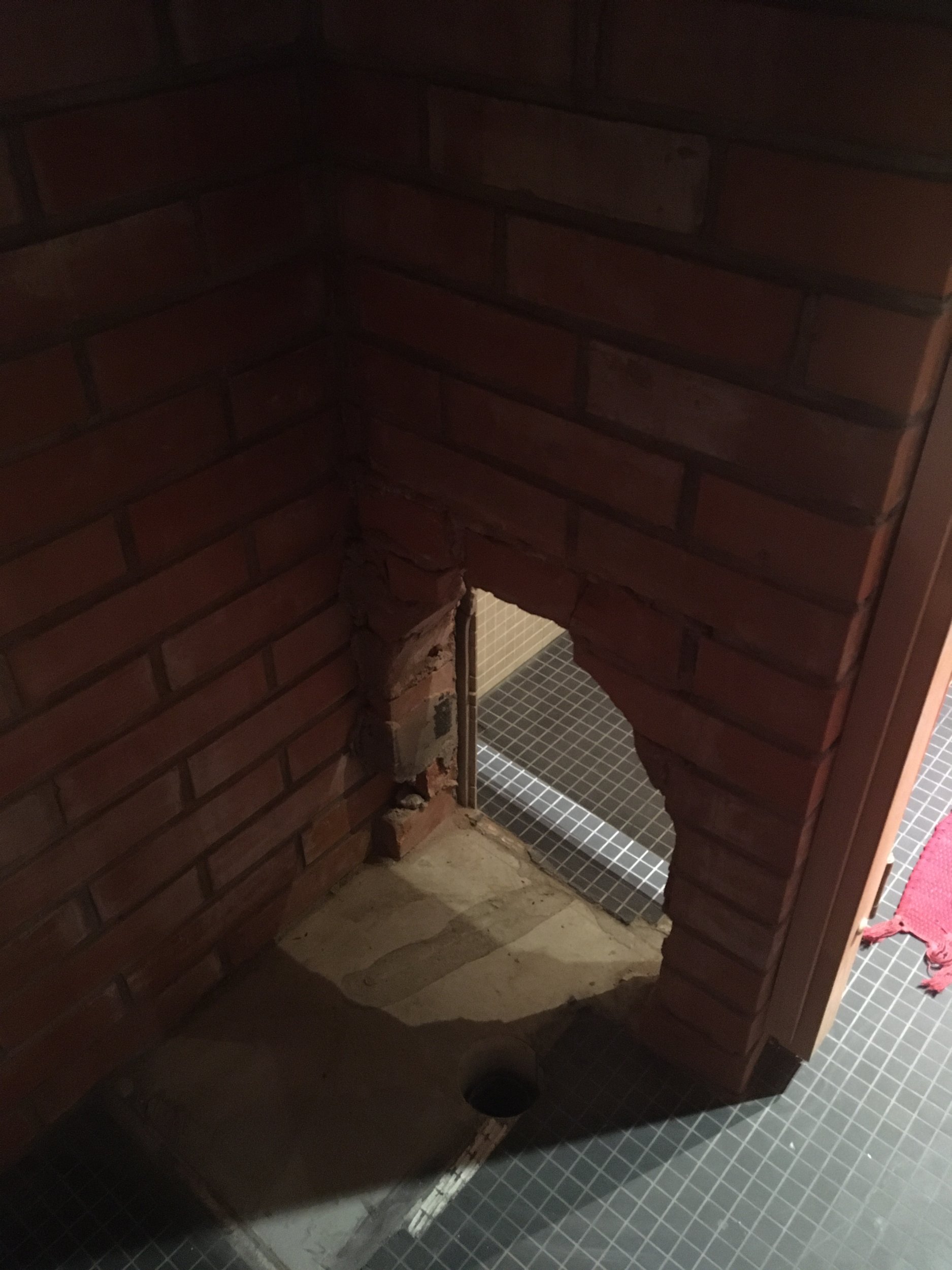 (Vana puuküttega ahju eemaldades sein vajus, sest toetus vanale raudahjule. Nüüd tuleks sein uuesti teha)