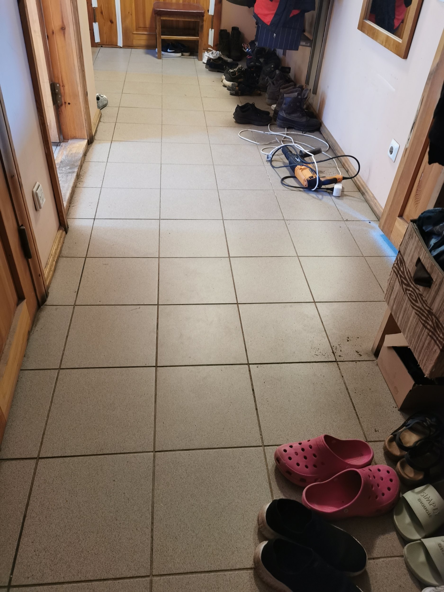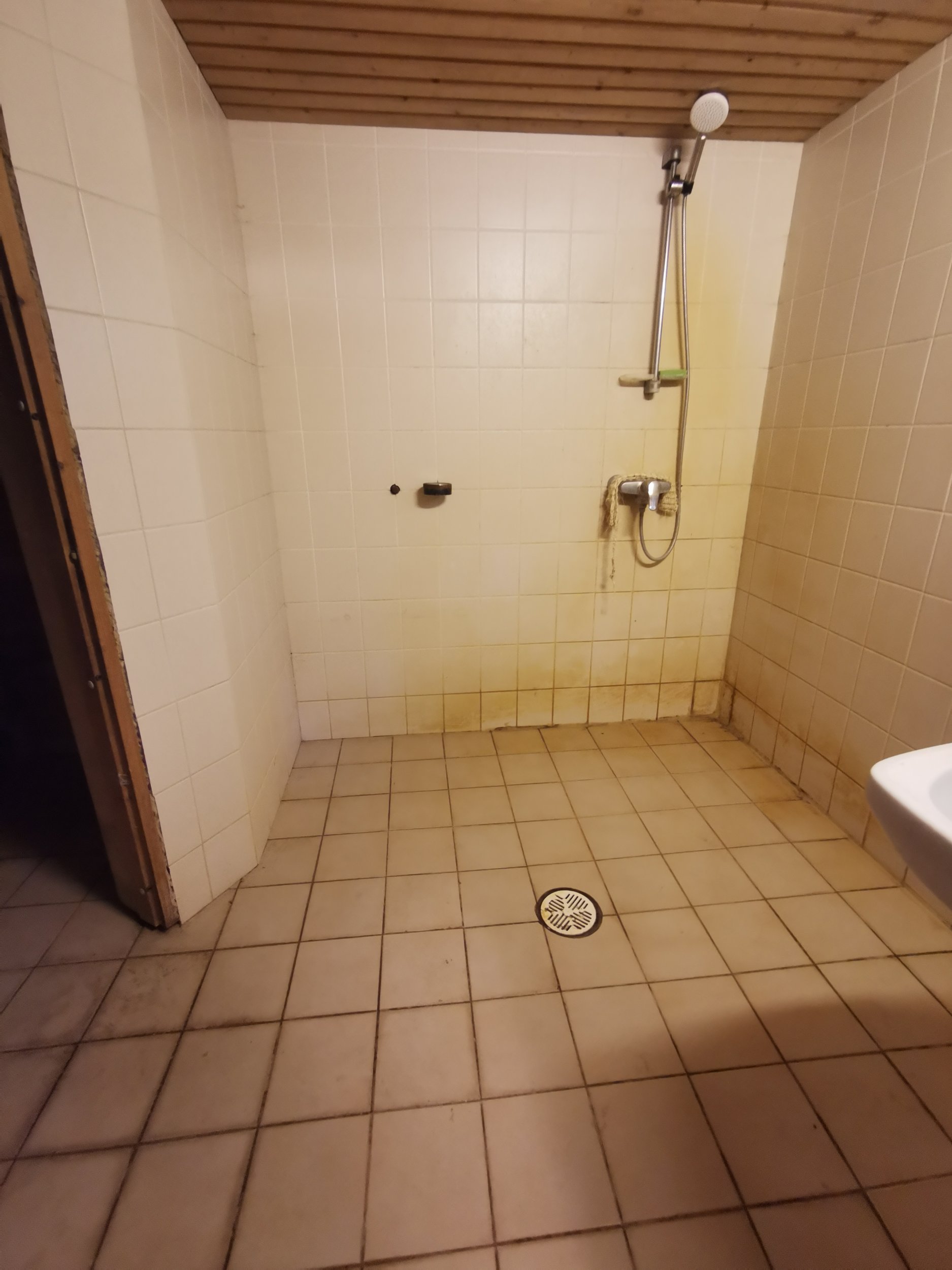 Elektriküttega esiku, wc, dušširuumi põrandate lammutus 21,4 m2 + 8 m2 dušširuumi seinte lammutus.