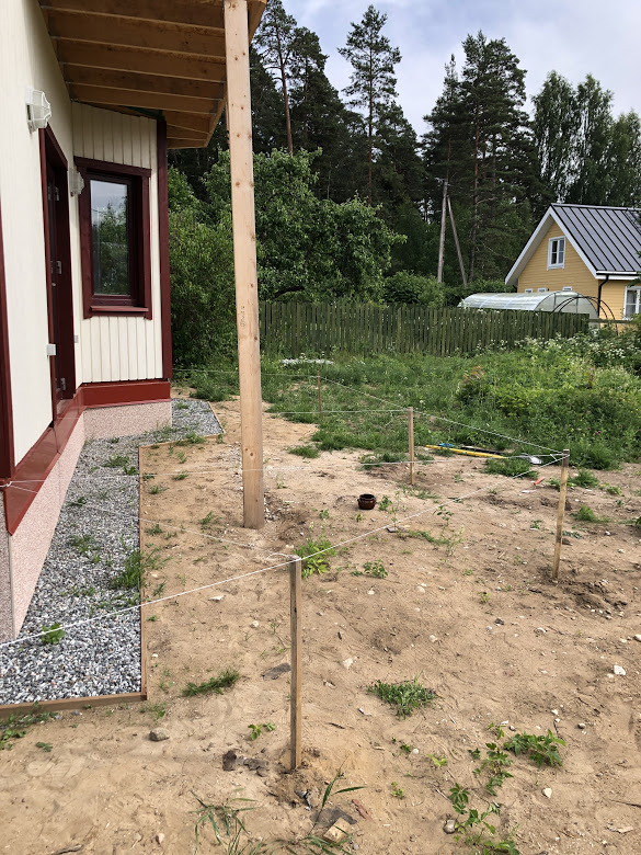 Terrassi oleme planeerinud kõrgena, ümber nurga minevana ja ümbritsetud pea kõigist külgedest trepiastmetega. Kuna maapind on veidi kaldega, siis igas küljes ei pruugi tulla sama palju trepiastmeid, seetõttu on joonisel märgitud ära ka erinevate punktide kõrgus maapinnast.