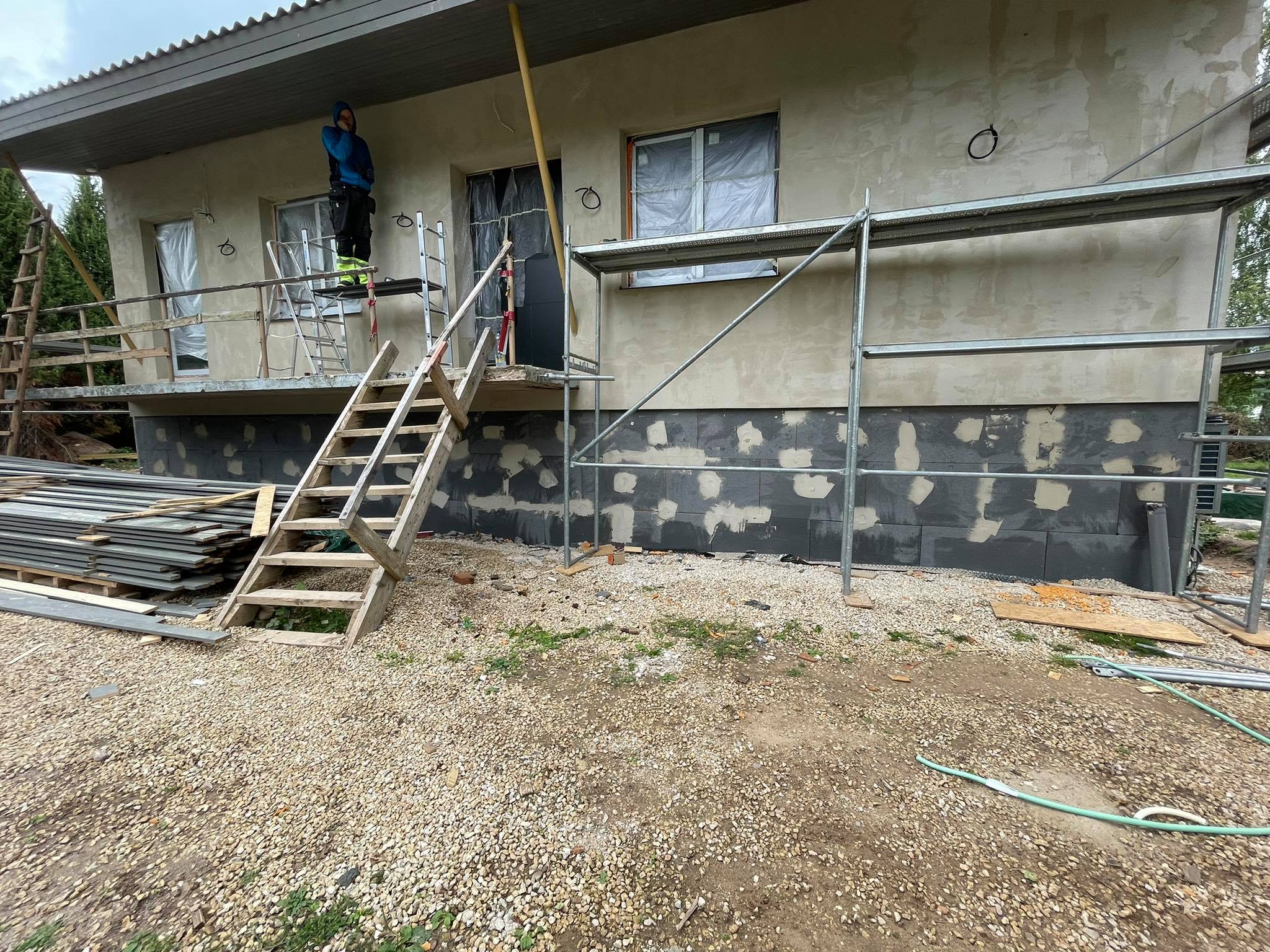 Välisfassaadikivide(dekoratiivkivi) paigaldus soklikorrusele. 90-100ruutu.
