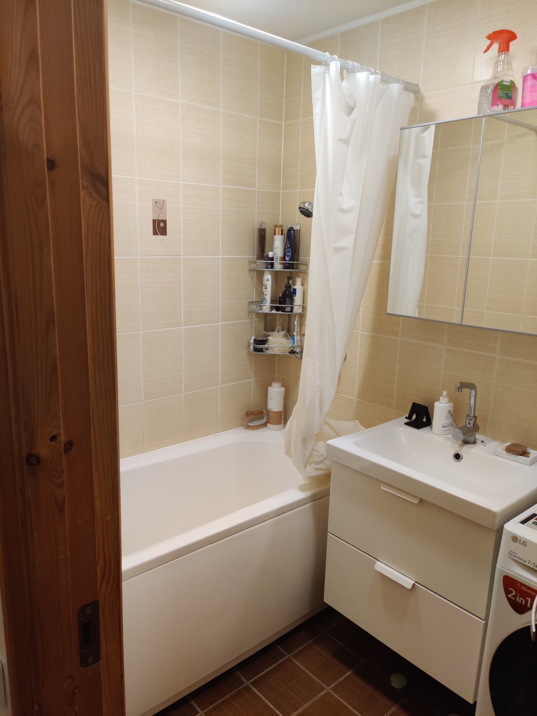 Vannitoa põranda ja seina plaatide eemaldamine, uute plaatide paigaldus ja lae värvimine. Lisaks uue vanni ja uue kraanikausi paigaldus ning sanitaartehnika (dušš, kraanid) ühendamine.