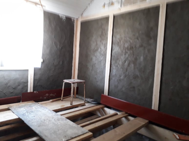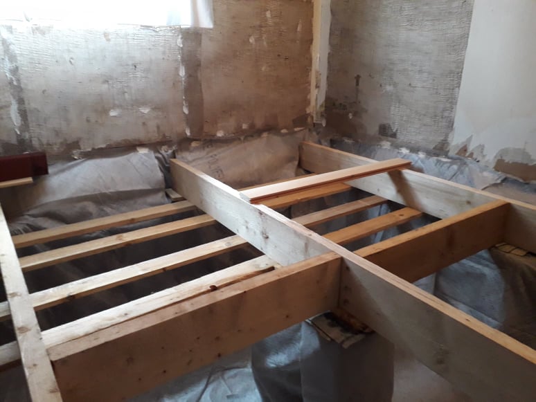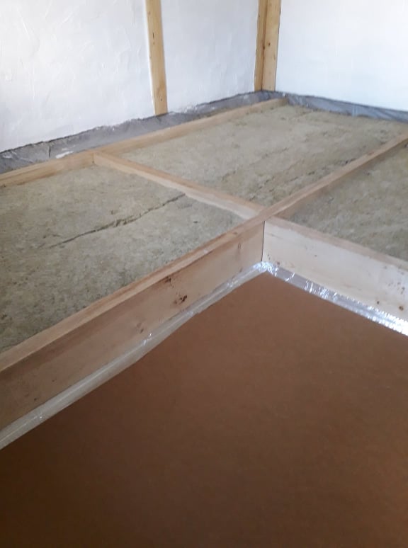 14 m2 puitpõranda (laud+papp+alustalad ja must laudis) lammutamine. 50 cm mullatäidise väljevedu aeda. Põllukivist vundamendi puhastamine ja krohvimine. Tuulutusavade korrastamine. Geotekstiili paigaldamine põrandale ja vundamendile. Põranda alustalaprusside pesad vundamendi servadele Põranda alustalade paigaldus. Musta laudise paigaldus. Puidukaitsevahendiga töötlus. Tuuletõkkeplaatide paigaldus. Kivivilla paigaldus. laudpõranda paigaldus. Põranda lakkimine. Fotod on kõrvaltoa põranda ehitusest. Ehituse ajal ööbimisvõimalus.