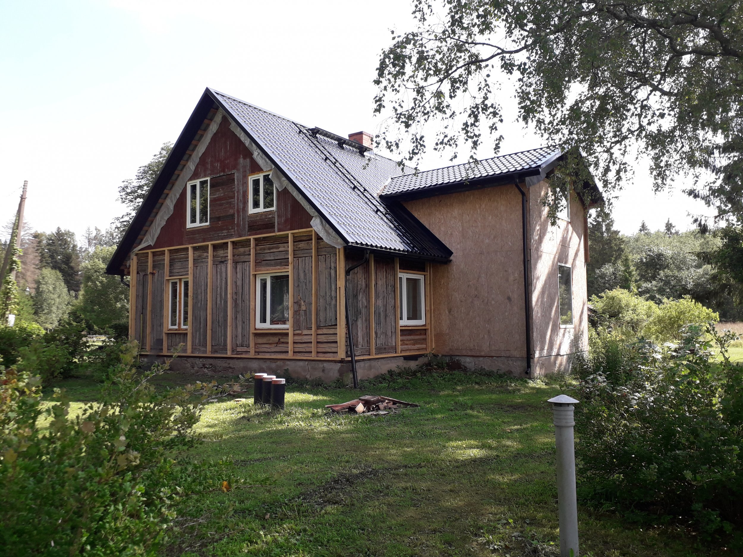 Kinnise pooriga vahuga soojustada sokkel (kõrgus u 60cm, vahu paksus u 70mm), I korruse palk väljast (kõrgus 290cm, majakarp 12x10m) vaht 100mm.