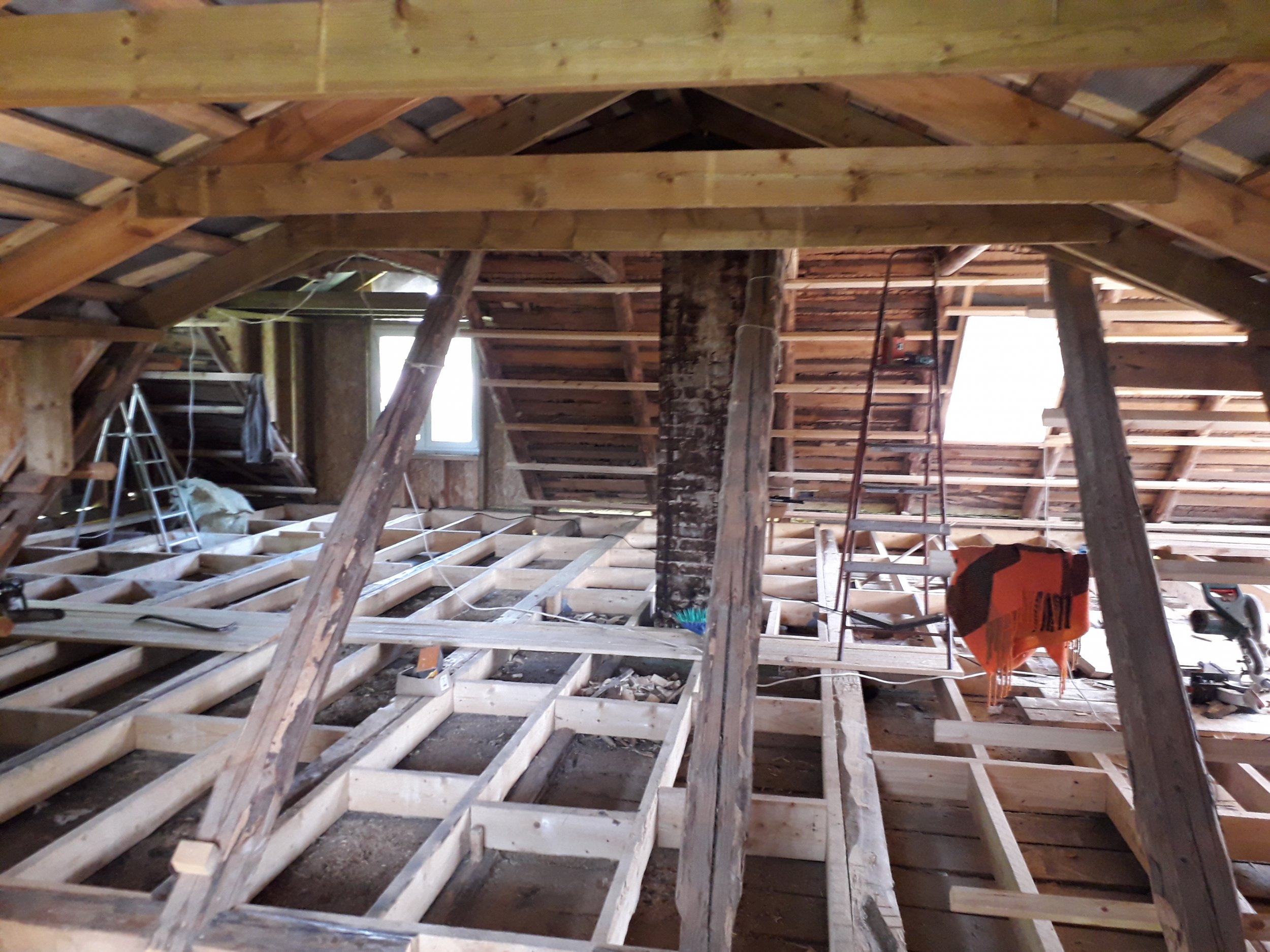 II korruse otsaseinad (10x2,4m), trepihall (4,4x3x6m), vintskap (2,8x2,1x3m), kaldlagi (3,7m) ja II korruse horisontaalne laepealne (2,2x12m) 150mm vahtu.
