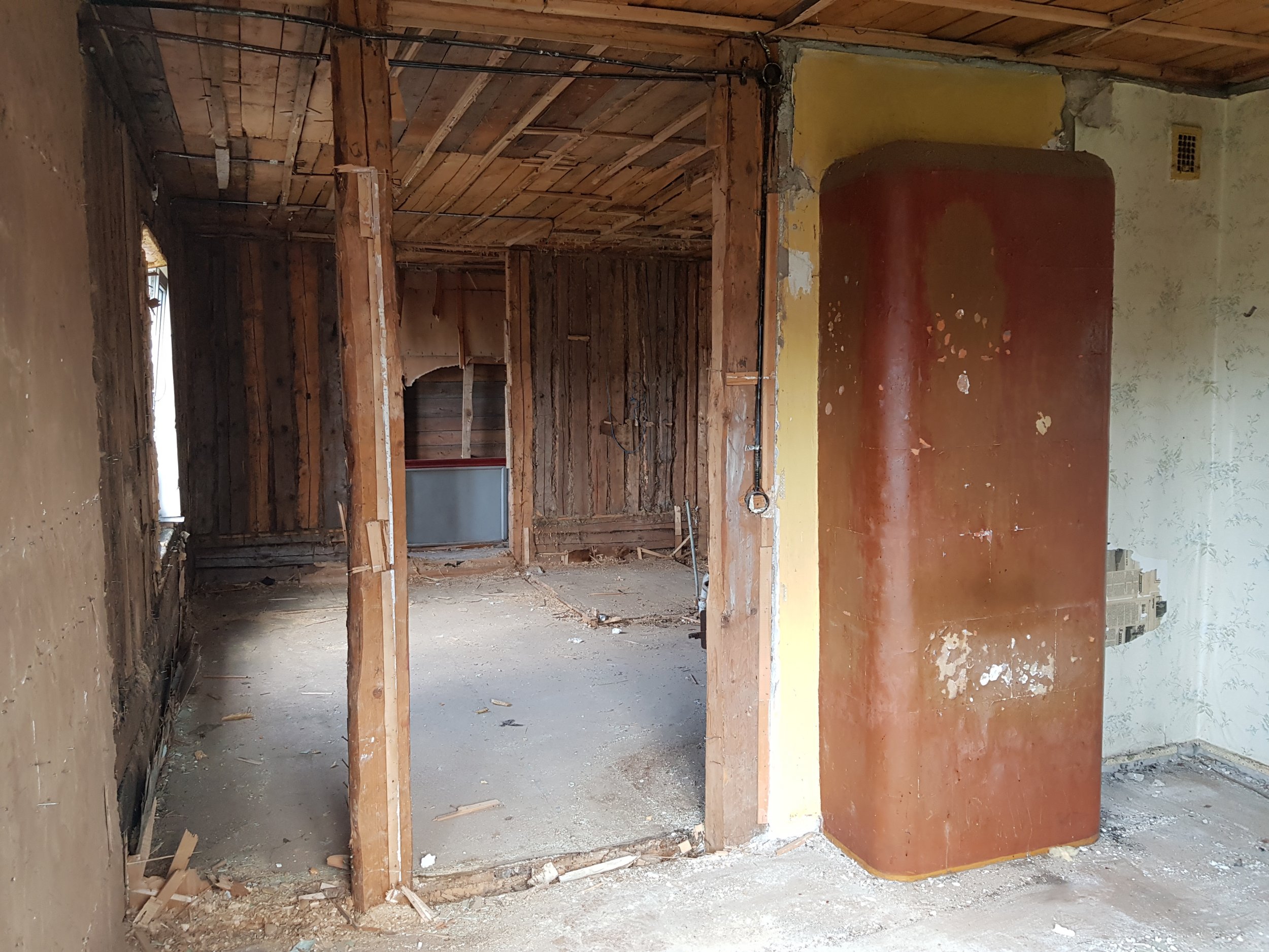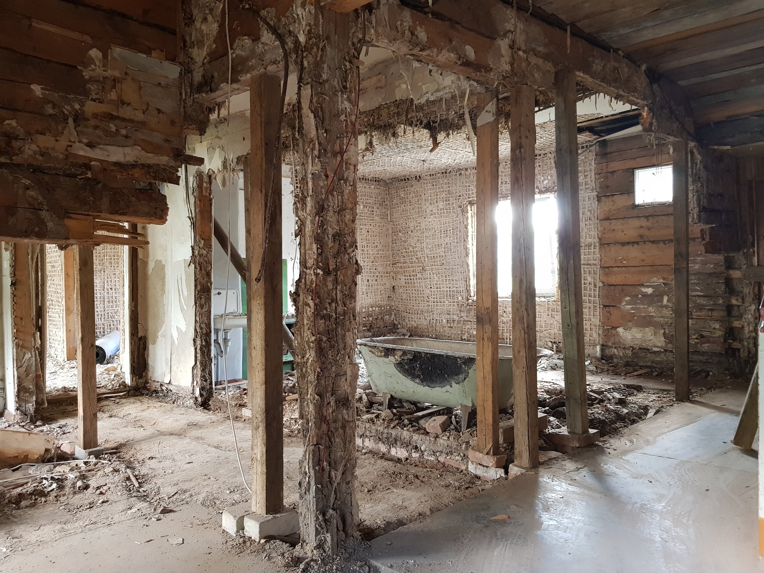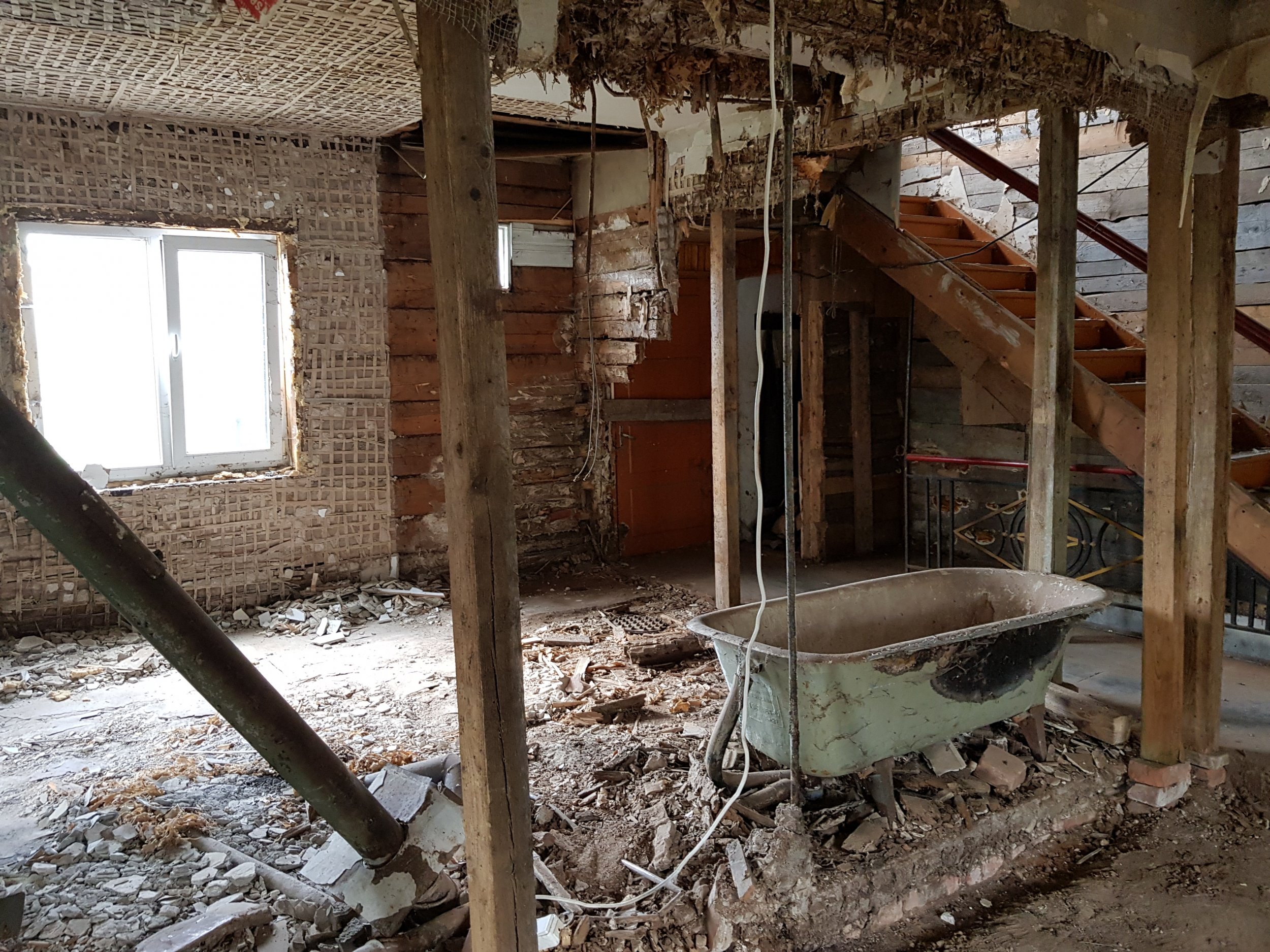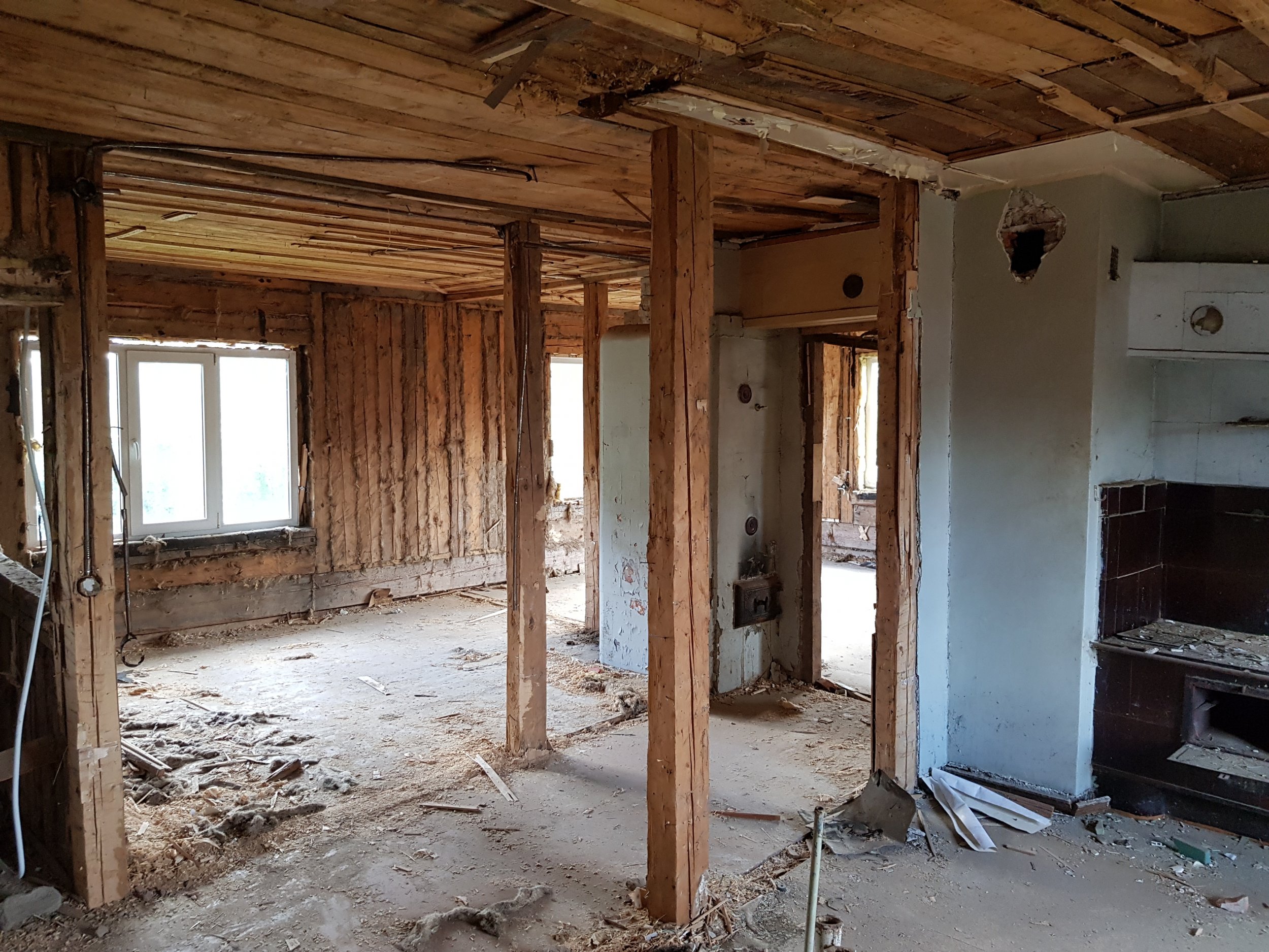 2. Lammutustööde eest vastutab Tellija. Siselammutustööd on osaliselt tehtud. Seinad puhastatud kuni palgini. Käsil puitvahelagede puhastamine kuni taldadeni 1/2 ja 2/3. Pööningu koristus. Põranda puhastamine 1-korrusel, ettevalmistus betoneerimiseks. Välilammutustööd- silikaat fassaadi lammutamine teostatakse vastavalt peatöövõtja ajalisele kavale.