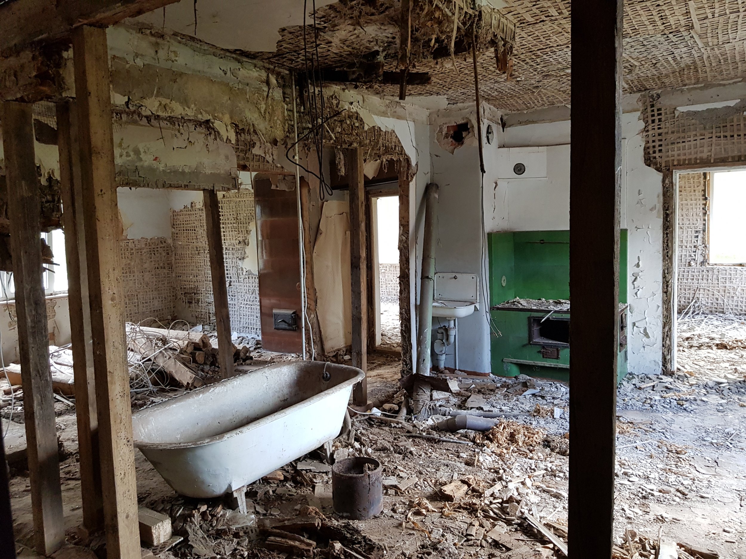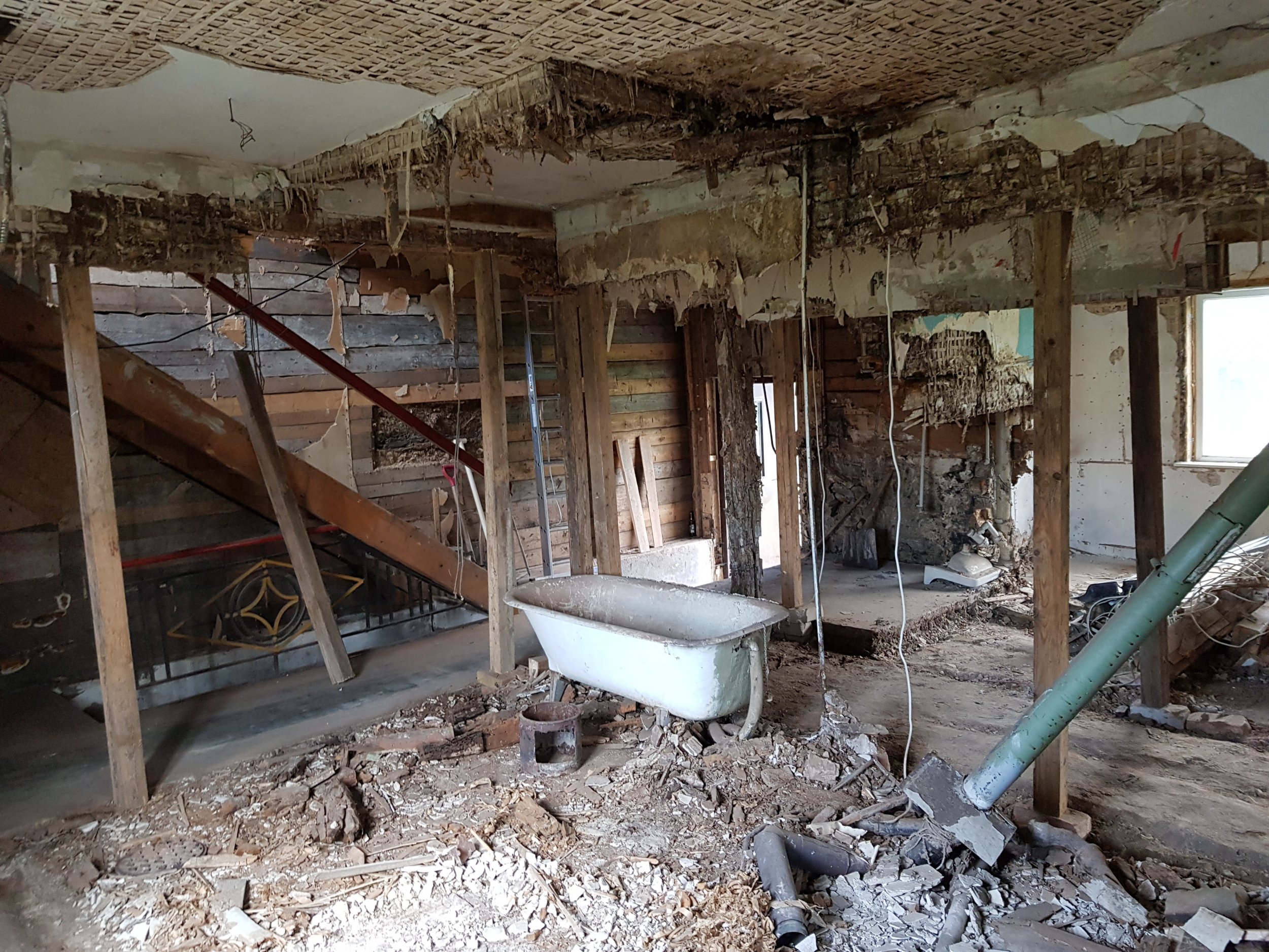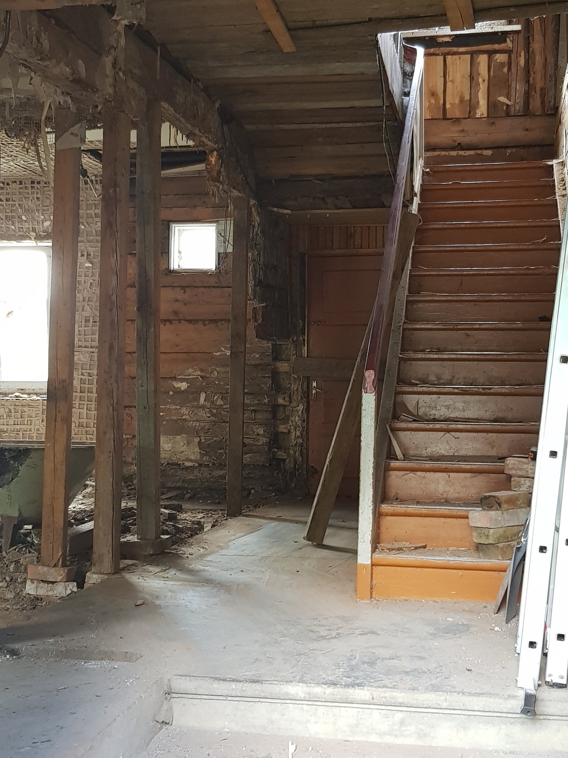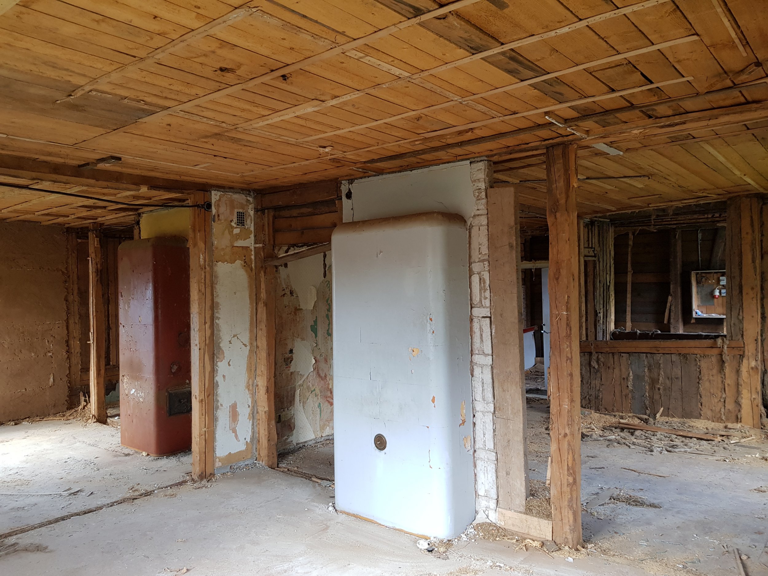 2. Lammutustööde eest vastutab Tellija. Siselammutustööd on osaliselt tehtud. Seinad puhastatud kuni palgini. Käsil puitvahelagede puhastamine kuni taldadeni 1/2 ja 2/3. Pööningu koristus. Põranda puhastamine 1-korrusel, ettevalmistus betoneerimiseks. Välilammutustööd- silikaat fassaadi lammutamine teostatakse vastavalt peatöövõtja ajalisele kavale.