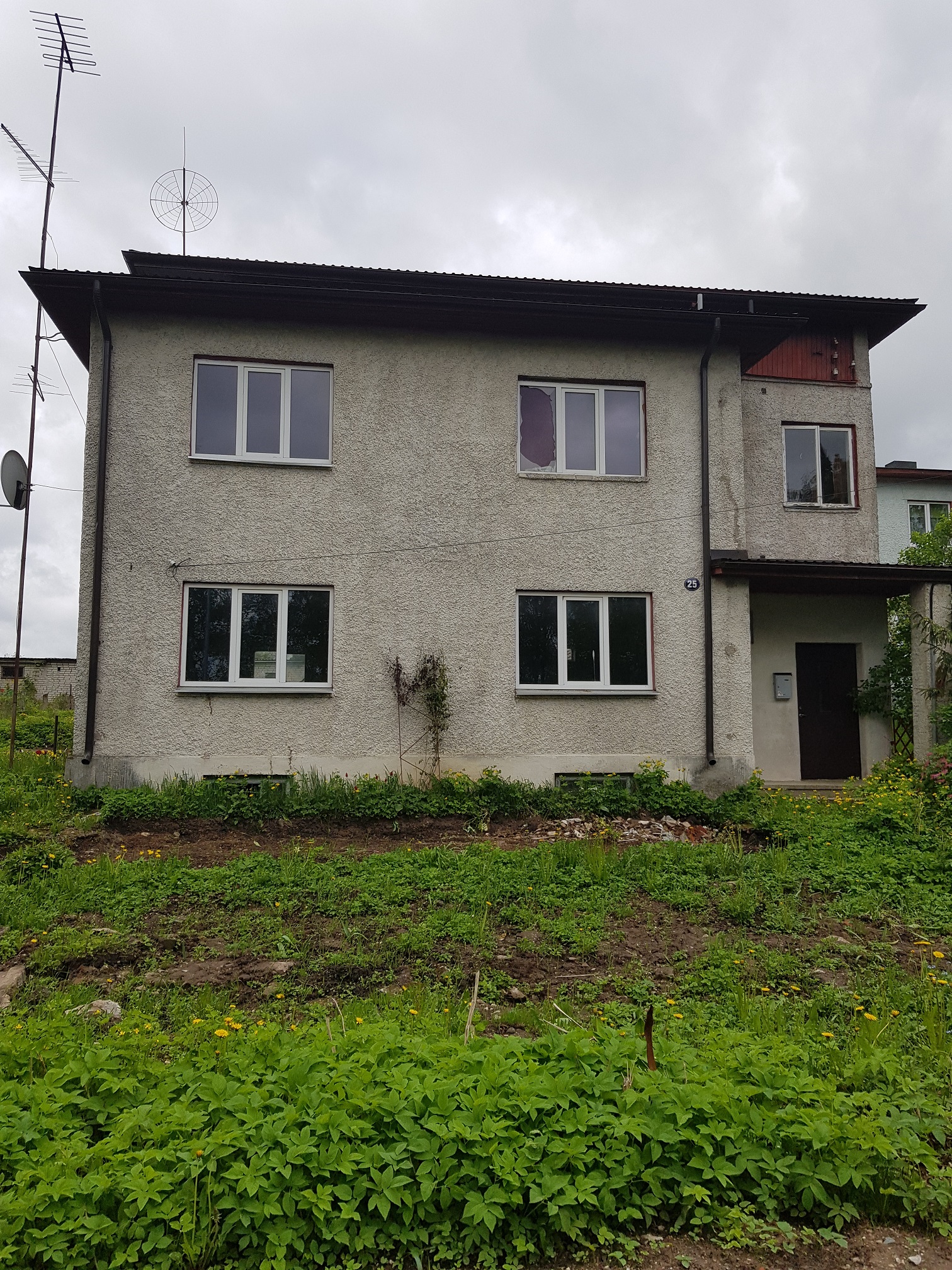Kahekordne elamu on ehitatud 60-ndatel. Aluseks on heas korras maa -alune betoneeritud kelder ning lisaks lint betoon vundament. Välisseinte kandev konstruktsioon on palksein, mis on I korrusel kohati mädanikuga kahjustatud. Sisemised kandvad postid on I korrusel keskel kahjustatud, mille tõttu on ühes kohas vahelagi mõni cm vajunud. Väljast on hoone viimistletud krohvitud silikaadiga, mille on kavas lammutada. Aknad on kahekordse klaasiga, plastikust. Katuse kandekonstruktsioon on heas korras pruss, mis on kaetud 7-8 aastat tagasi korraliku plekkiga. Objektil on olemas elekter ja vesi.