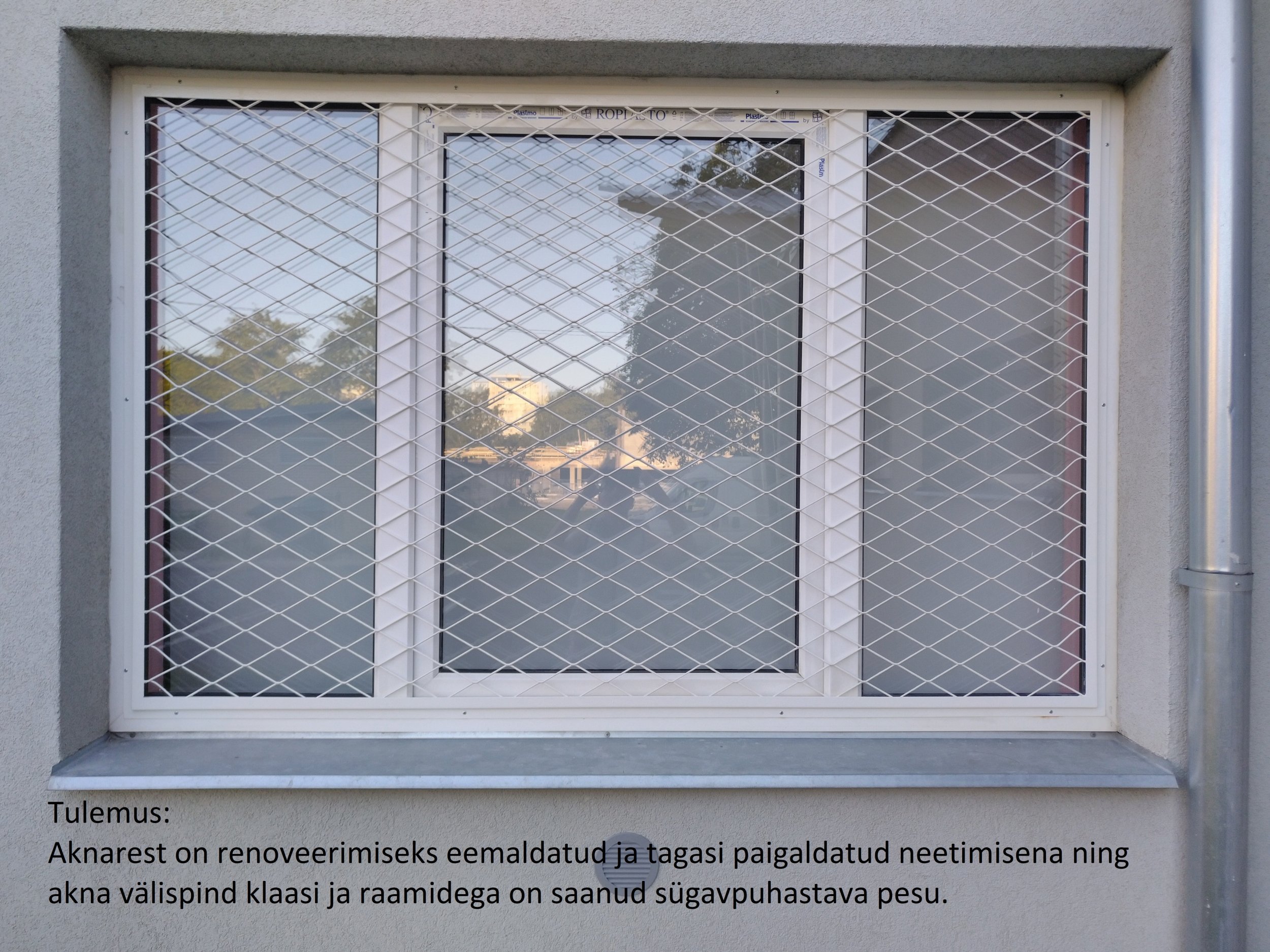 Oleme soovimas ühiselamu tüüpi kortermajas esimesel korrusel aknarestide renoveerimist ja antud akende sügavpuhastavat pesu välispindadele.