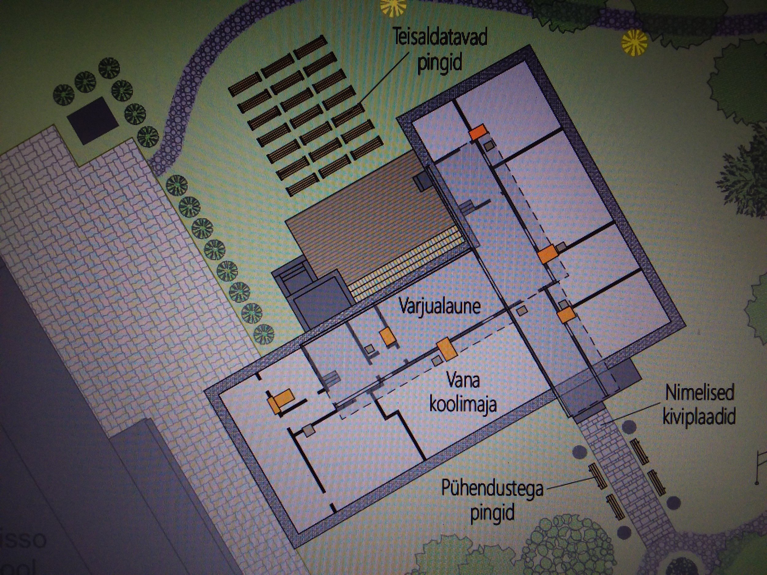Tänavakivi paigaldus 530m2 nunnakivi. Plats L kujuga, ala sisse tulevad mõned kontuurid risti kiviga. Plaan lisas, kivi läheb vana koolimaja alale.