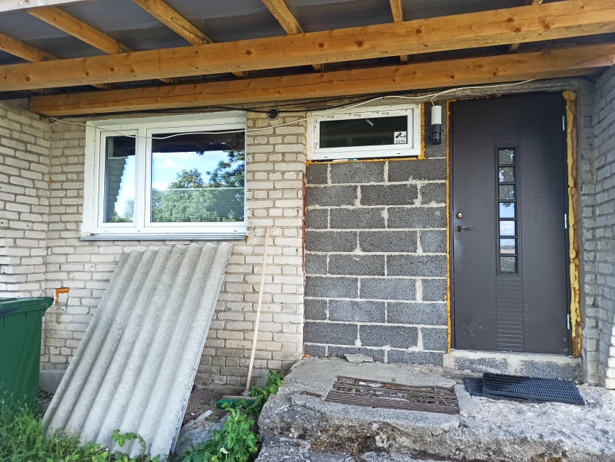 telliskivi sein on ukse kõrval asuvast seinast eespool 13cm. Lõpptulemus peab jääma ühel tasandil.