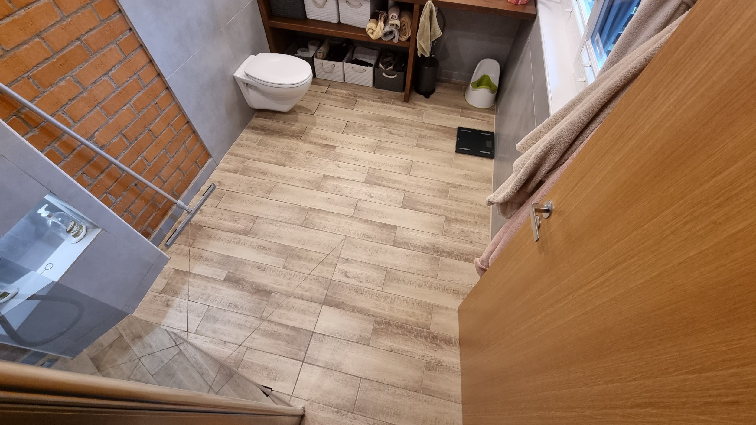 Vannituba valmis 2019. a kevadel. Kõigepealt ebaõnnestus tööde teostajal 1. kihi põrandaplaatide panek, kalded olid valed jne, mistõttu otsustati lisada 2. kiht ja sellega olukorda korrigeerida. Paraku on nüüdseks osad plaadid lahti, vuugid katki ja põrand laguneb. Vannitoas tuleb seega vahetada põrandaplaadid, kokku 6 m2, st kõigepealt üles võtta 2 kihti plaate ja asendada 1 korrektse kihiga. Töö hõlmab:
