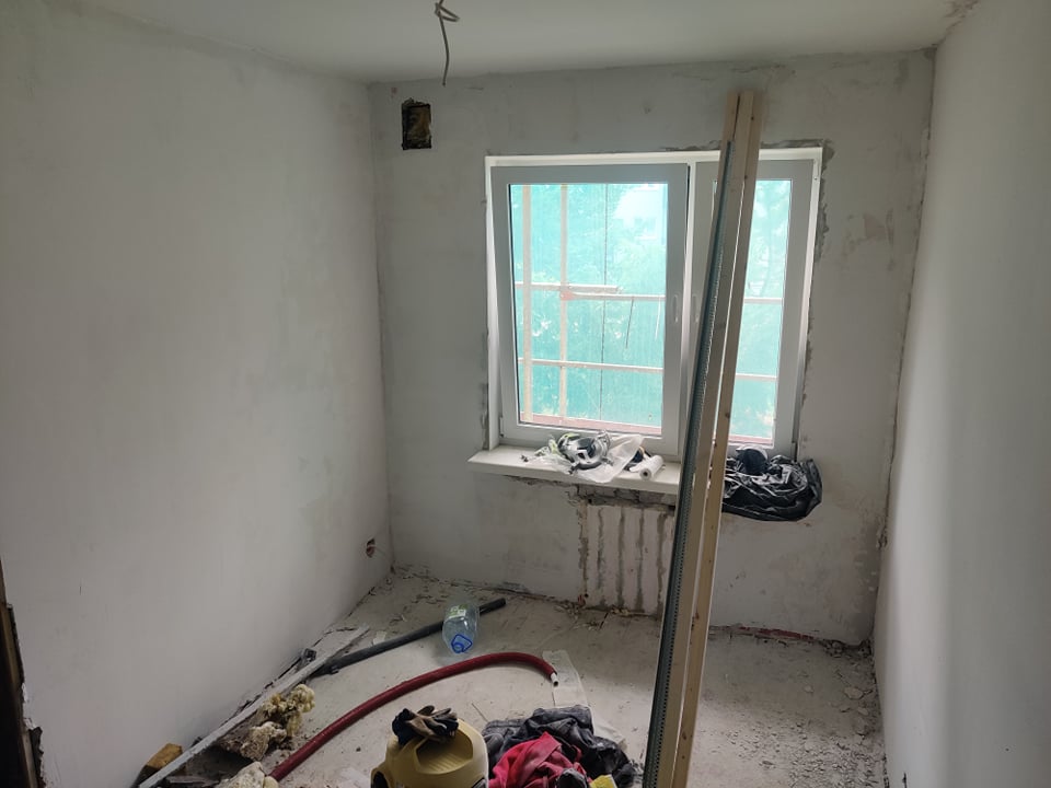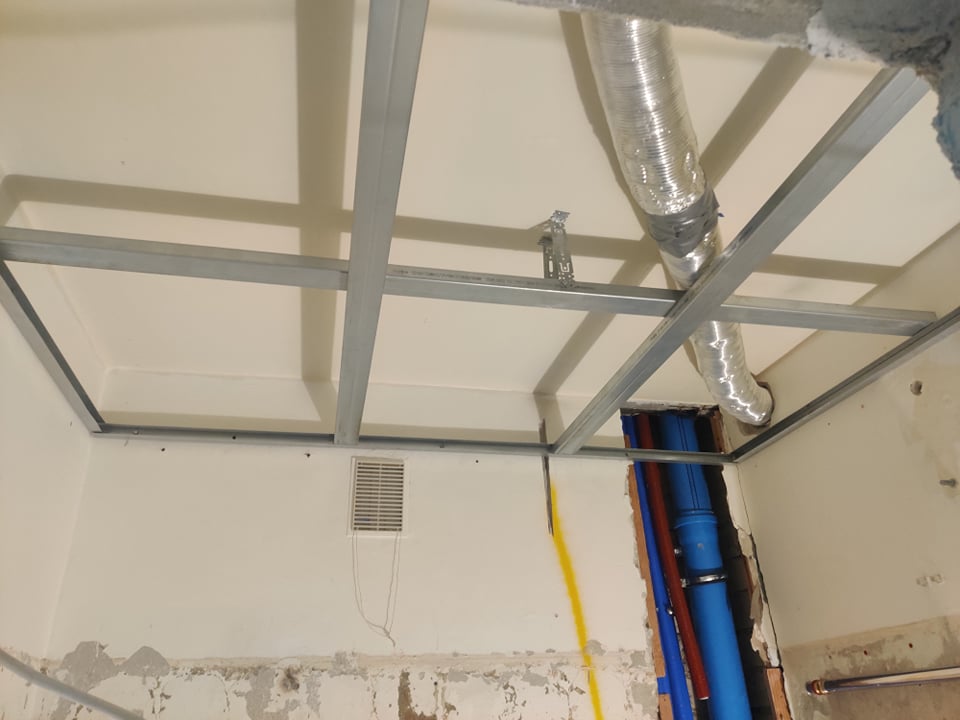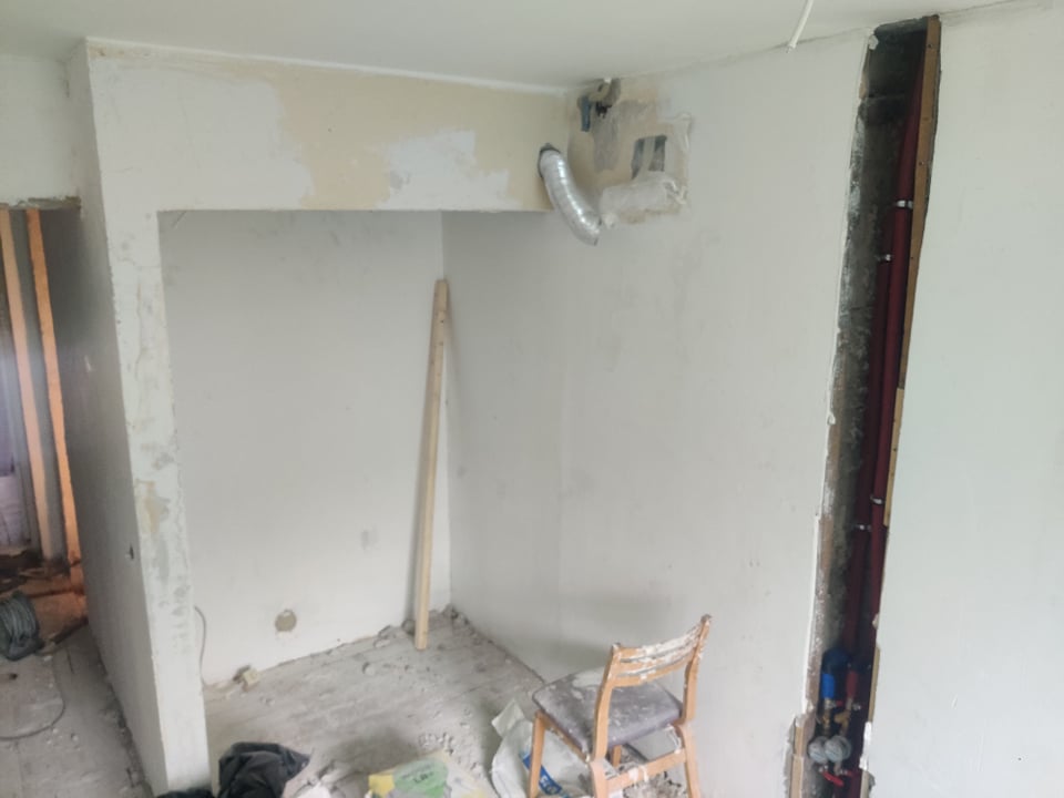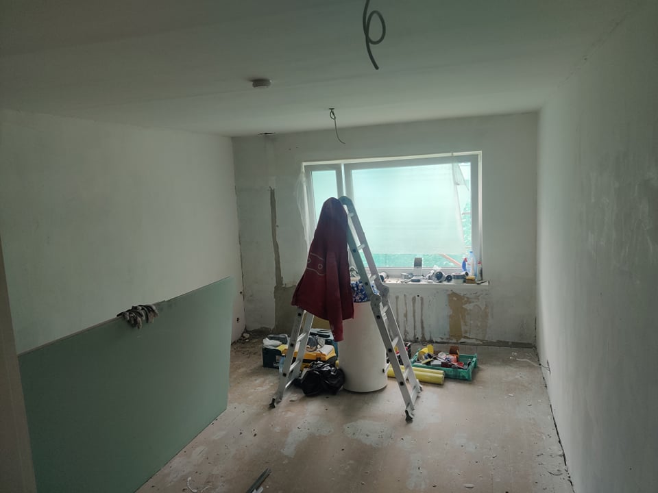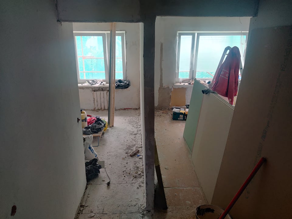 Korteris on tehtud lammutustööd ning alustatud krohvimisega. Koridoris ja vannitoas on tehtud laekarkassid ning terves korteris veetud uus juhtmestik.