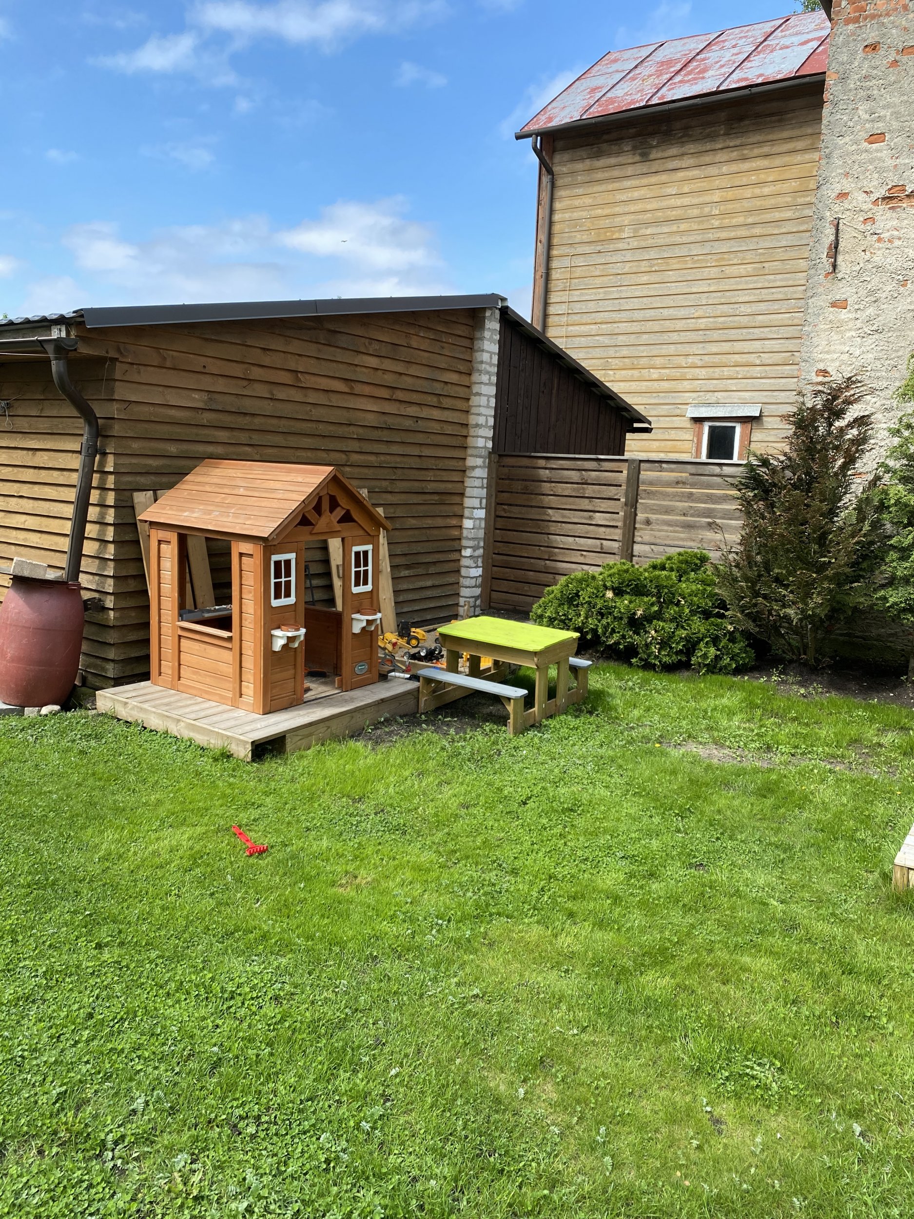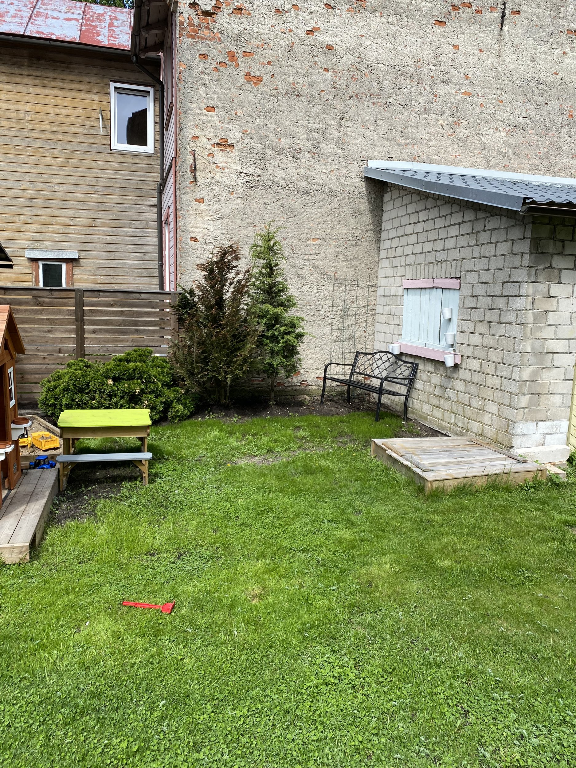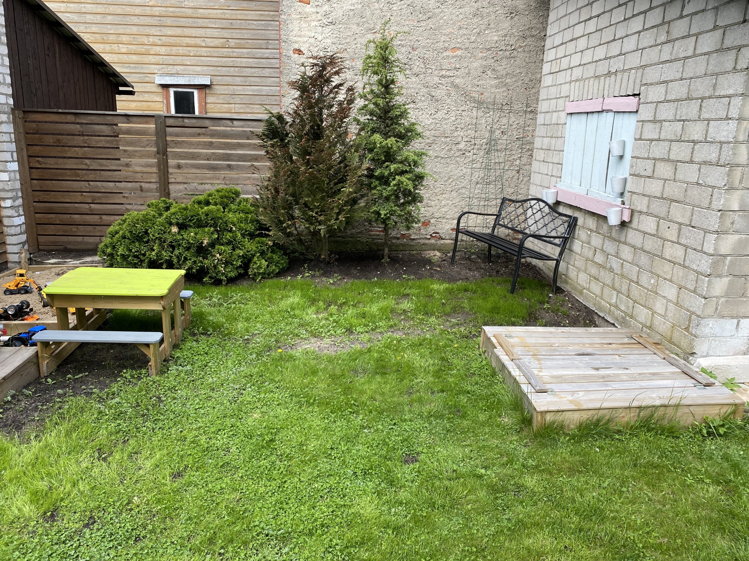 Mõõdud on 4,5 x 3,5 , see kuni laste majakeseni ( pildid manuses), aga seal ka puude osa mis peaks terrassist välja jääma. Kokku ca 12 ruutu tuleb