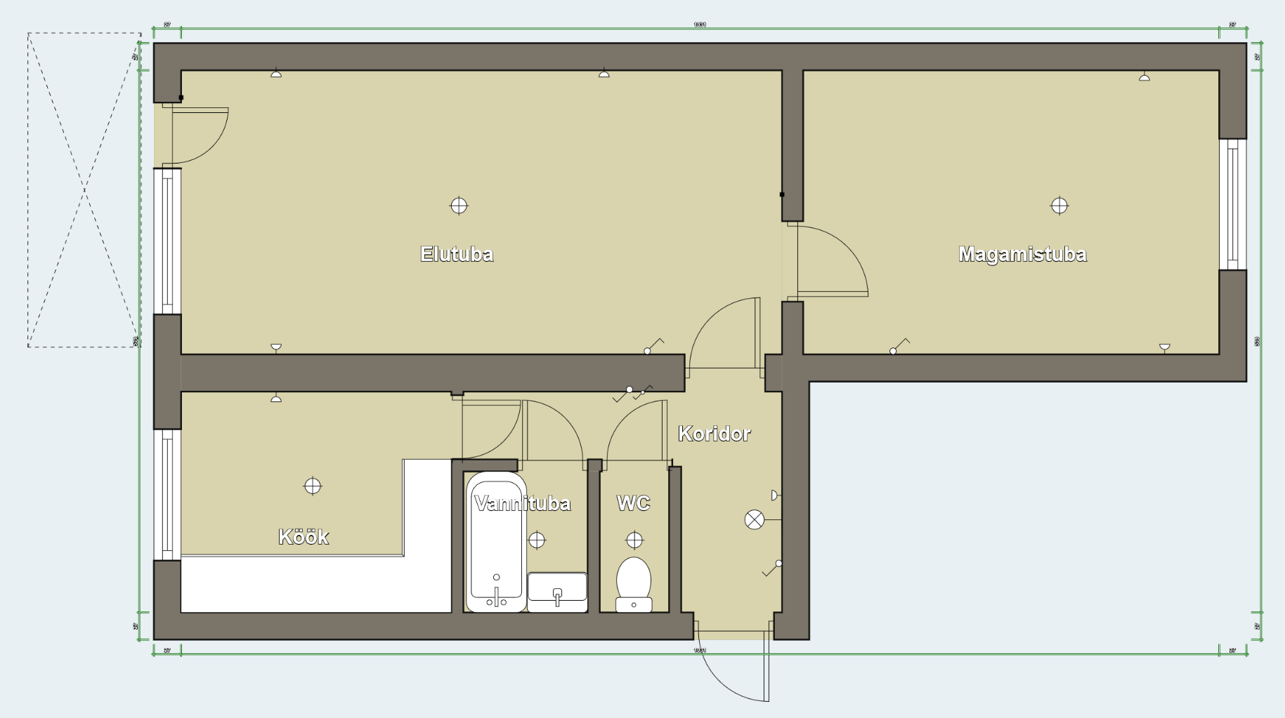 Köögimööbli ja tehnika jaoks on juba veetud eraldi uus kaabel, see jääb samaks.
