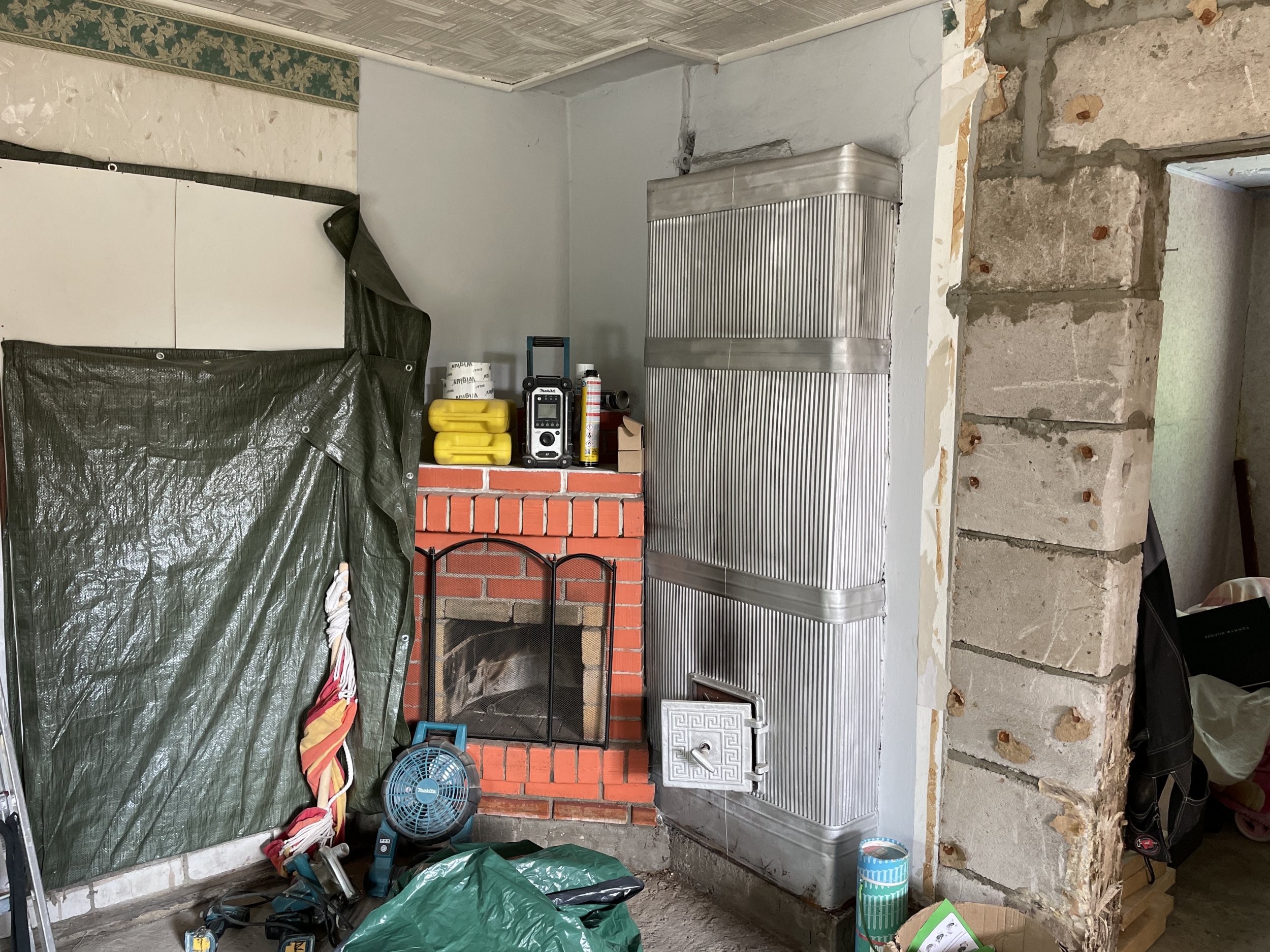 Ahi ja pliit välja, tekkinud praht ladustatakse krundile täiteks. |