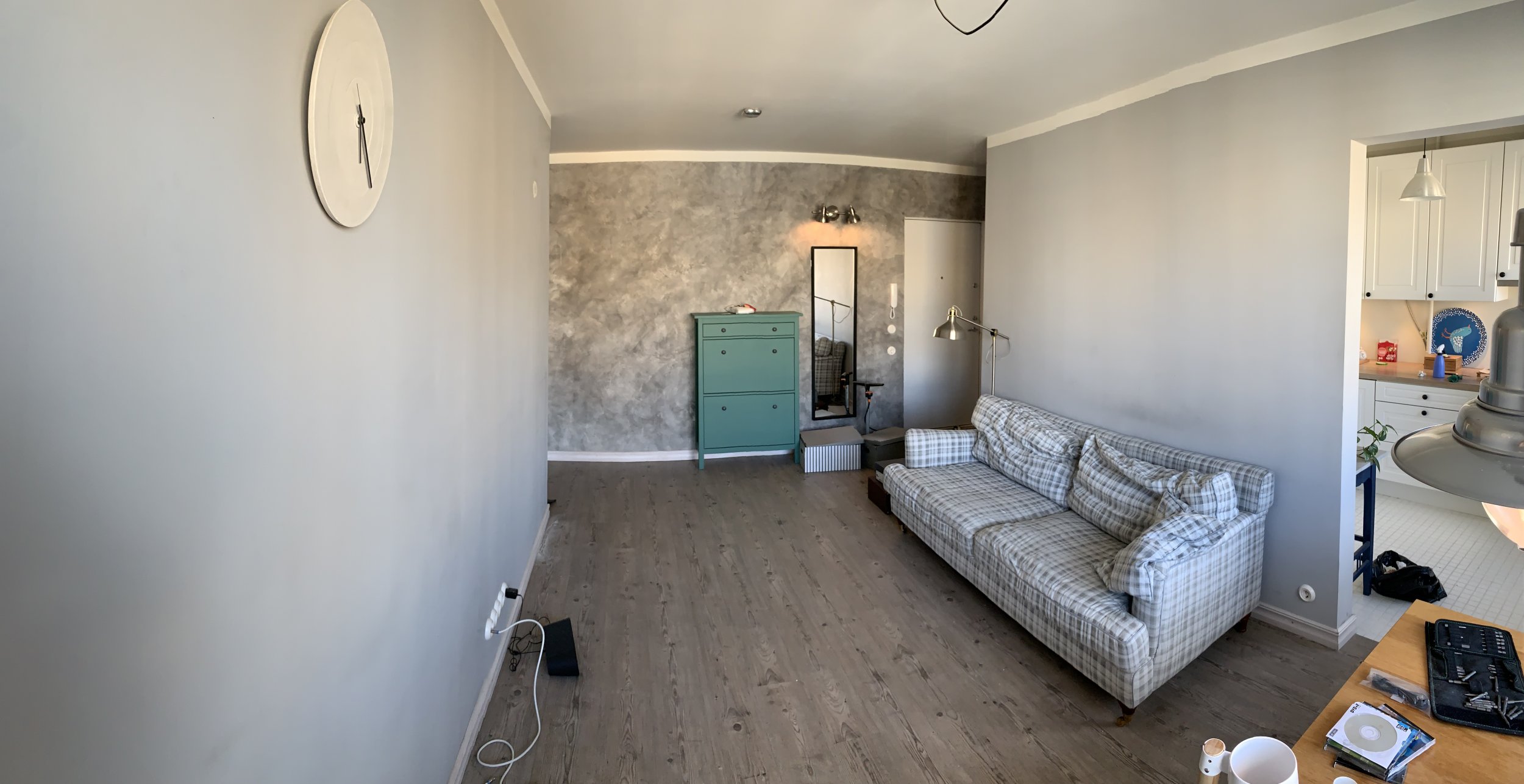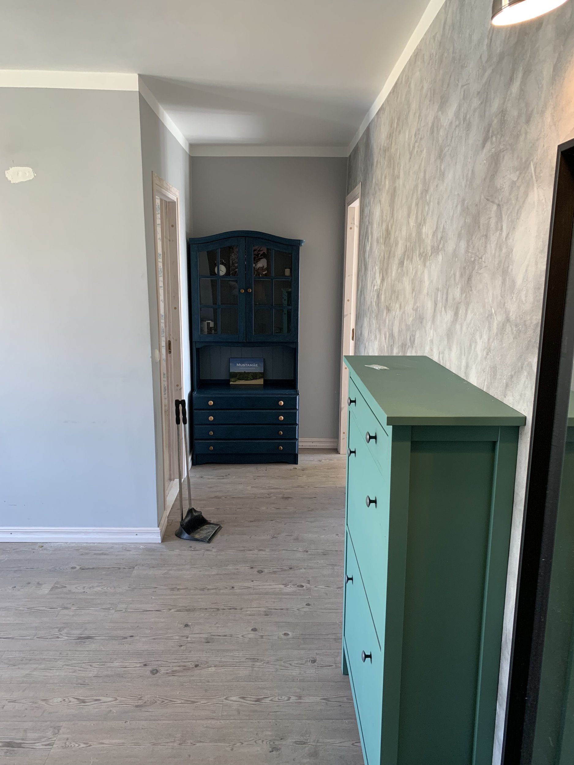 Korteri elutoa värvimine, värvitavat pinda ca 35-40m2. Ülevärvitav pind piltidel ühtlane hall (piltidel nähtav lubikrohvitud sein värvimise alla ei kuulu).