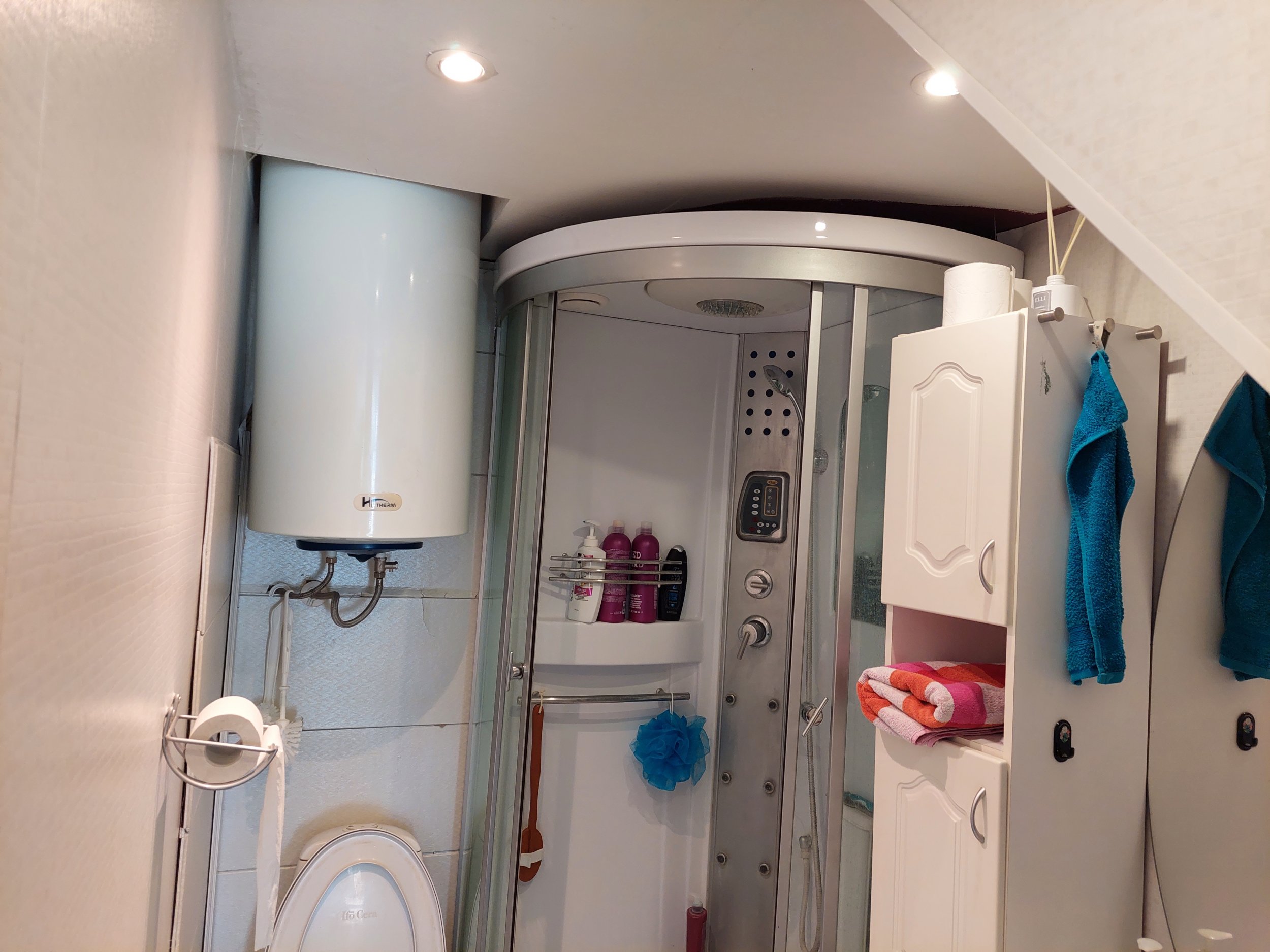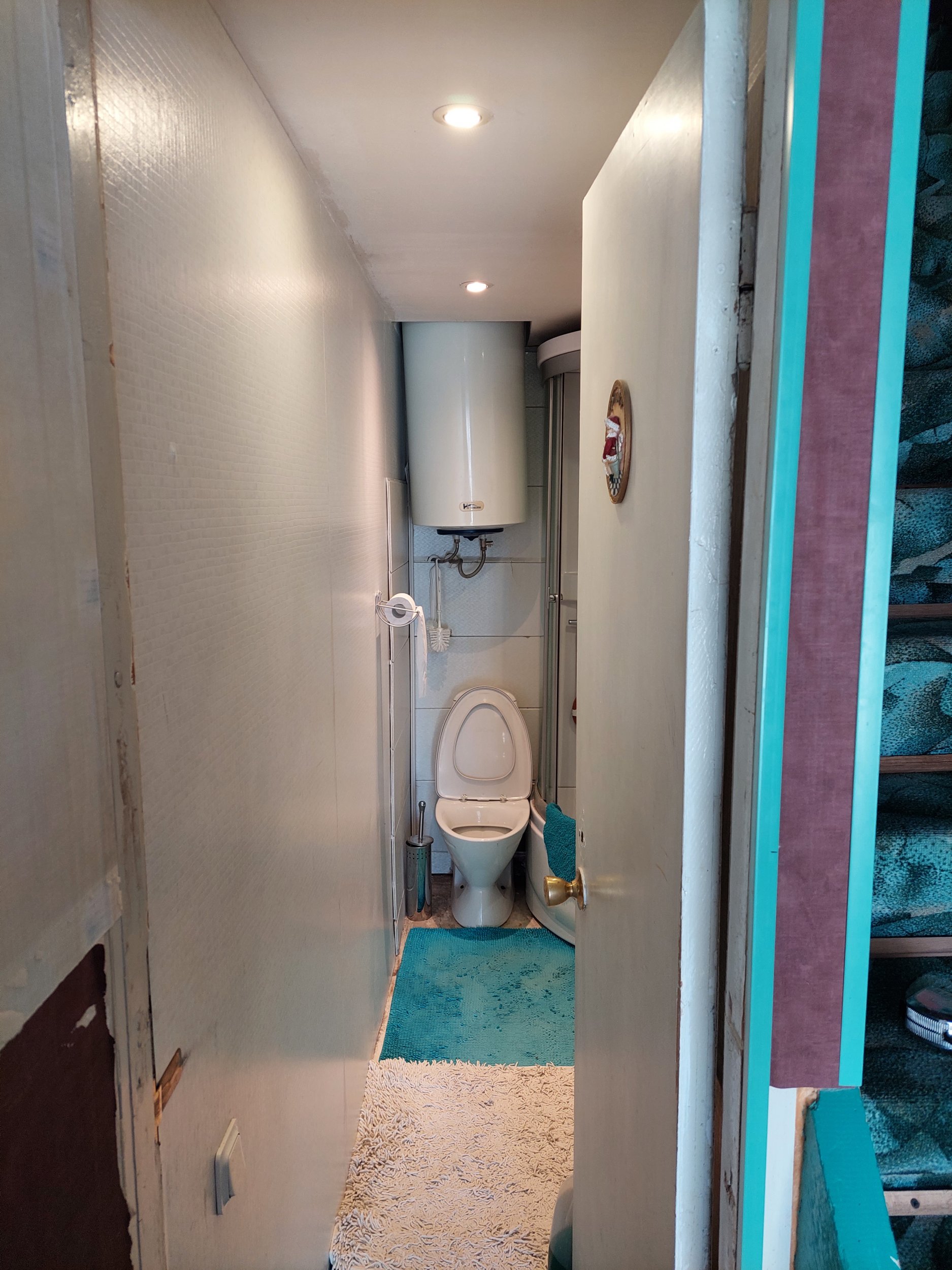 Vannitoa mõõdud: põrand 5,5 m2- 275 cm pikkus x 140cm laius; lagi 3,4 m2; seinad 14 m2.