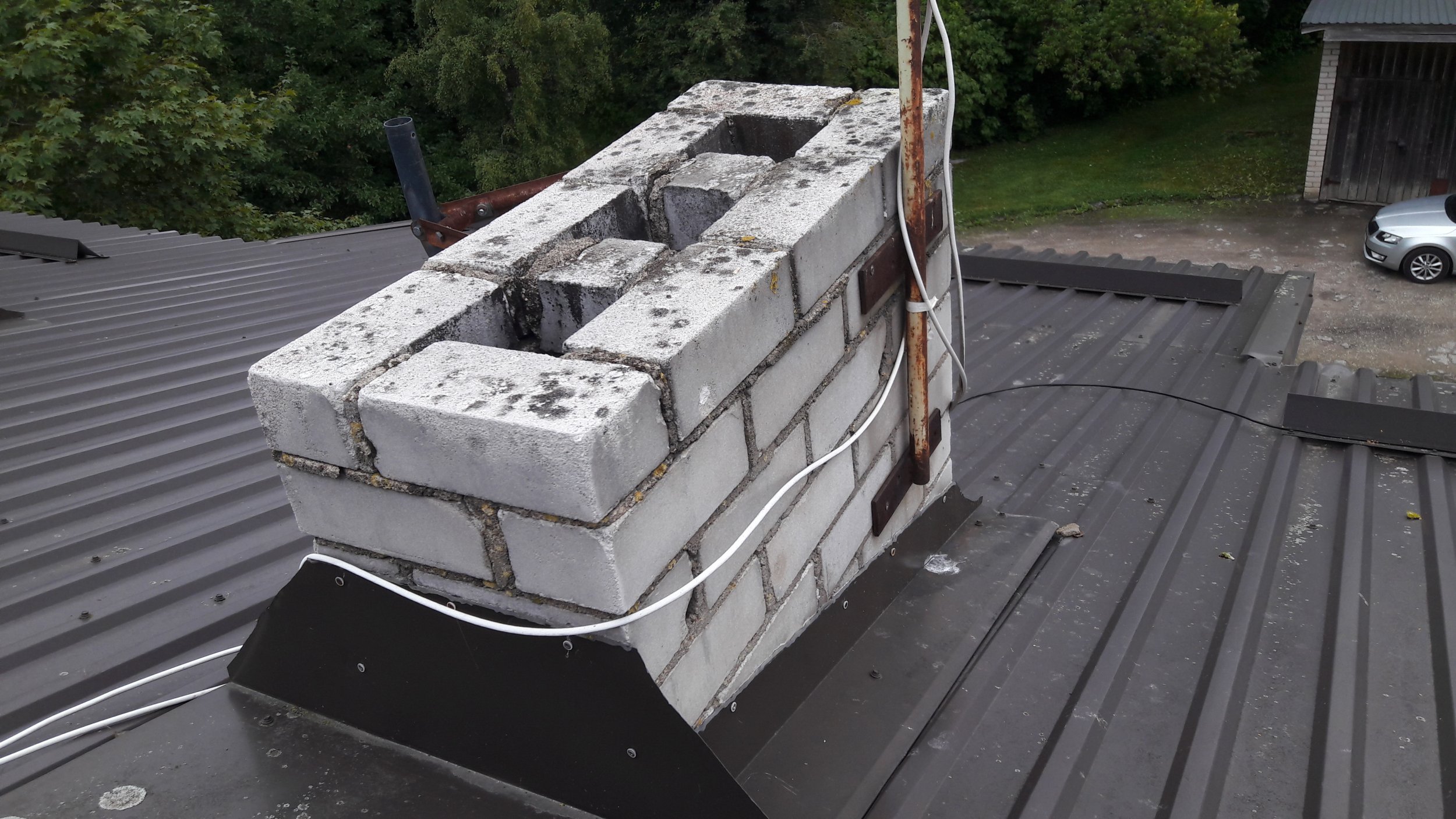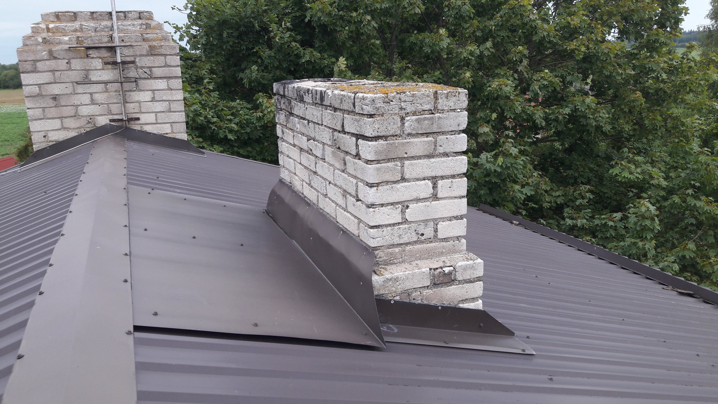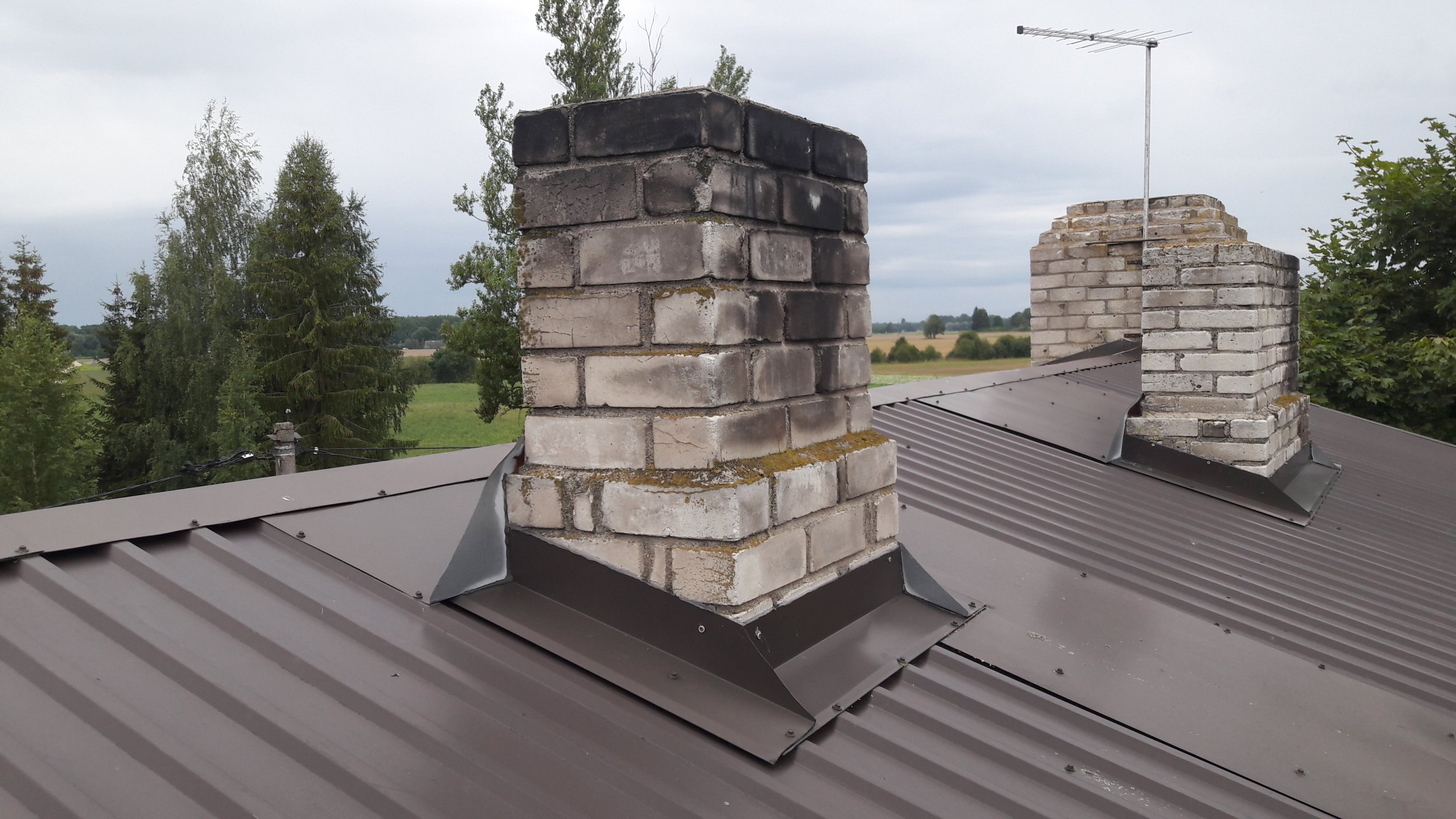 Korstnaotsade parandamine (lahtiste kivide kinnitamine, vajadusel asendamine) ja korstnaplekkide paigaldus.
