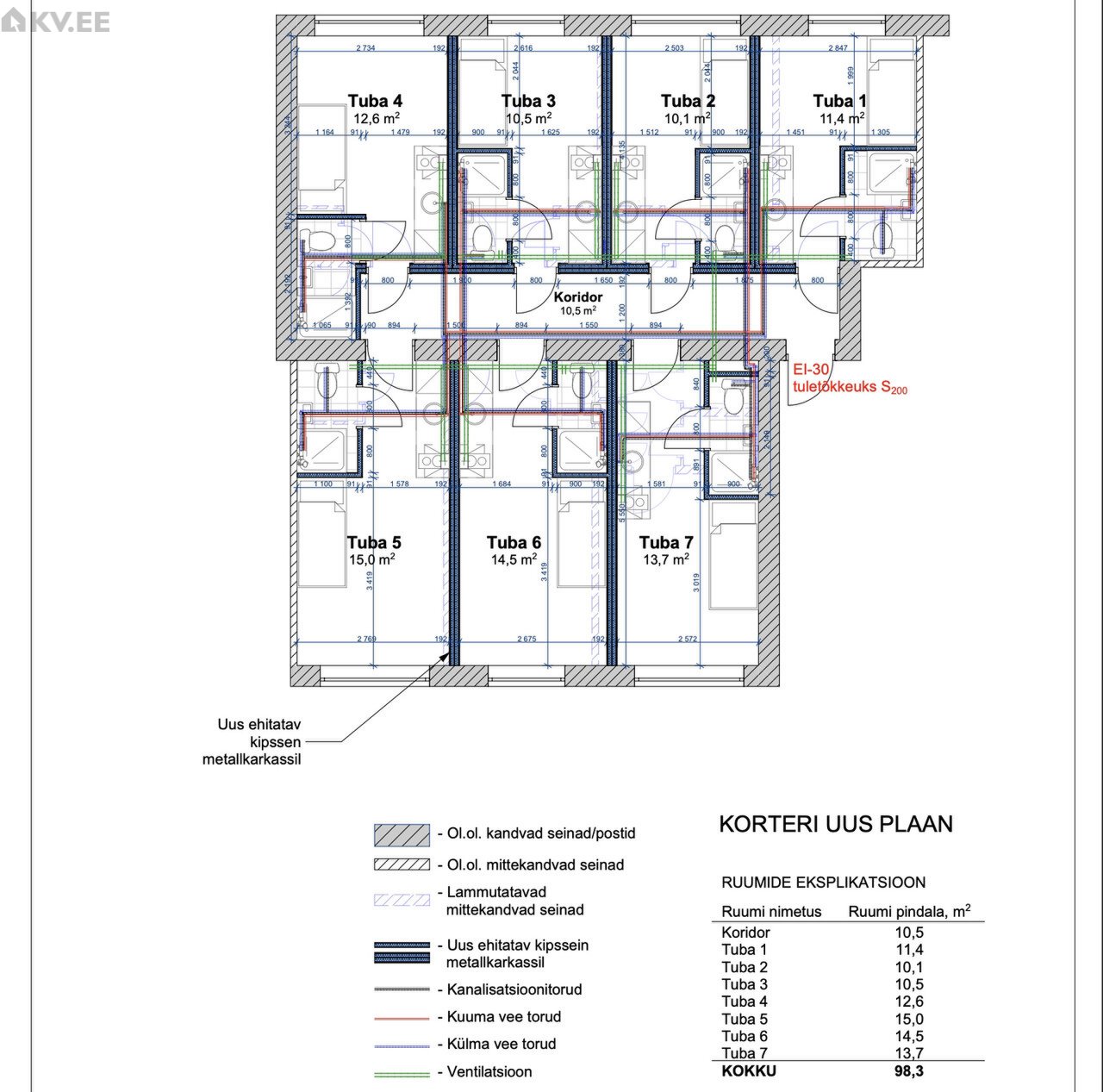 Paneelmaja 6-toalise 98.3m2 korteri ümberehitus 7ks stuudiokorteriks.