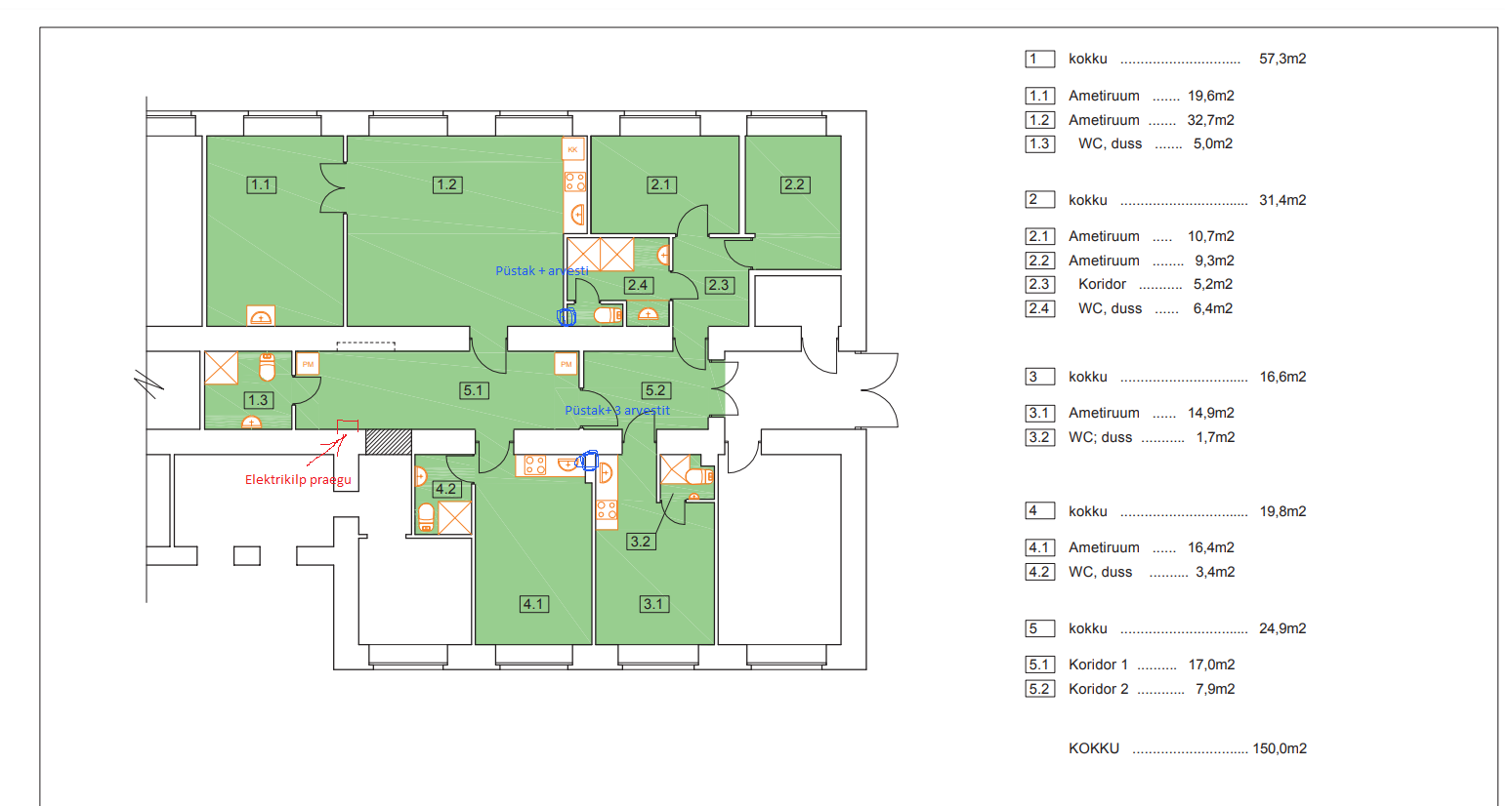 3) Suure korteri elektri ringi tegemine (valgustus+seinad 3-toalise jaoks),