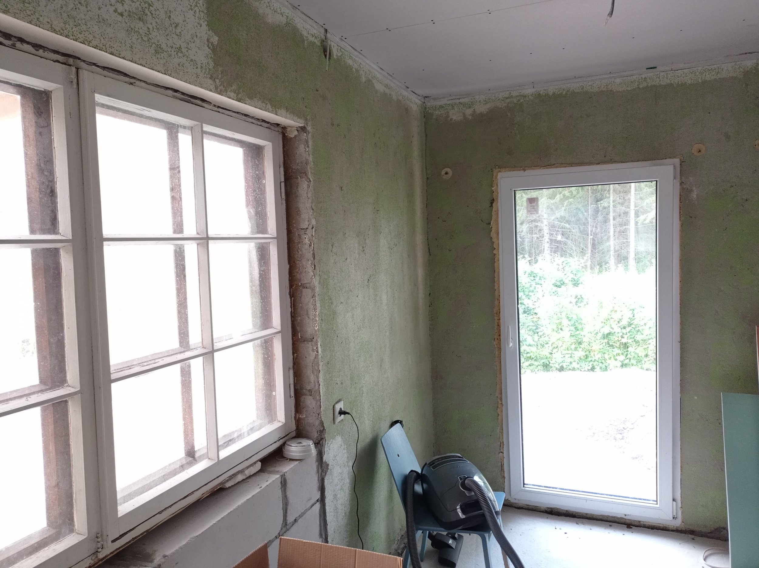 * Krohvitud seinade pahteldus (aluspind: tugev, ebatasane tsementkrohv). Tasasus peab sobima värvi alla. 21 m2