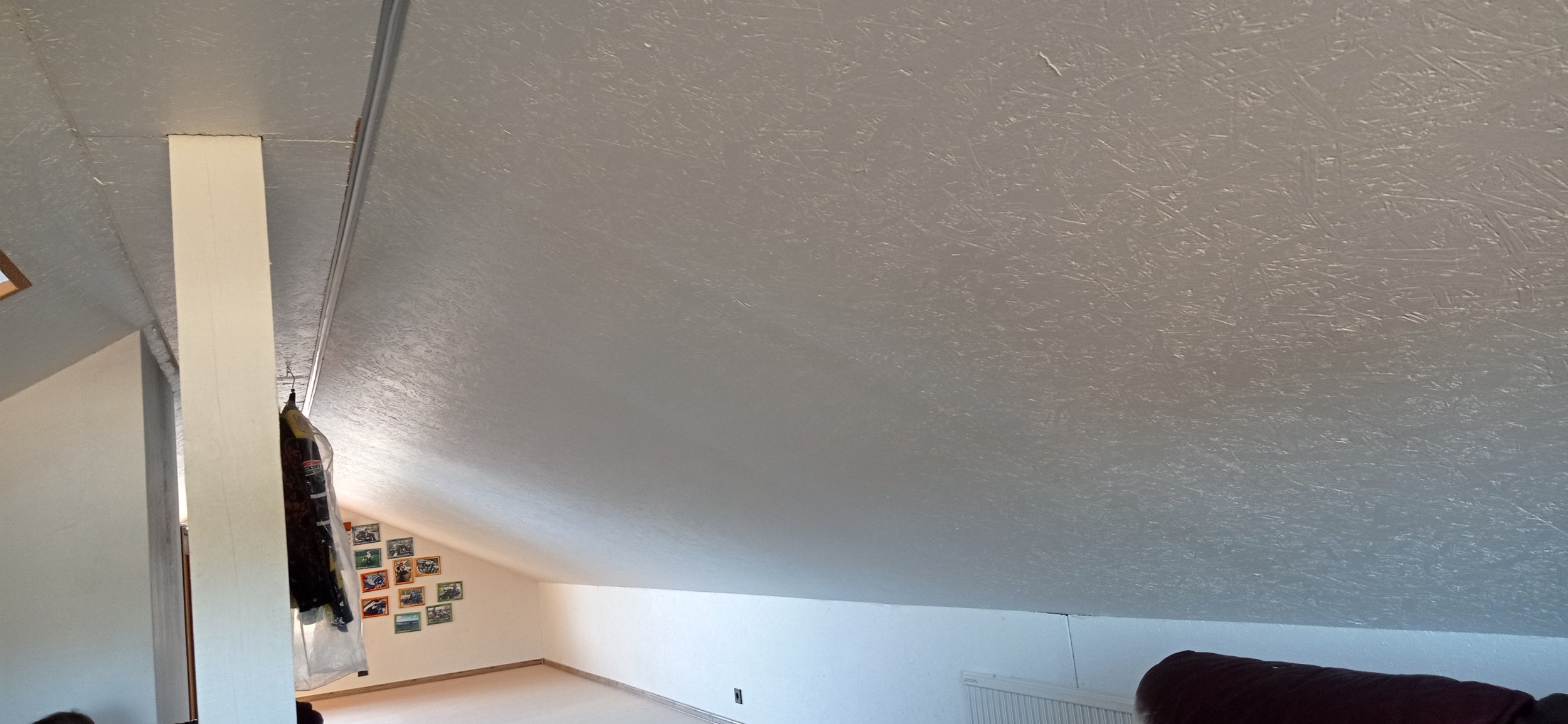 Hetkel kaetud OSB plaadiga (22mm), soojustatud villaga, plekk-katus.