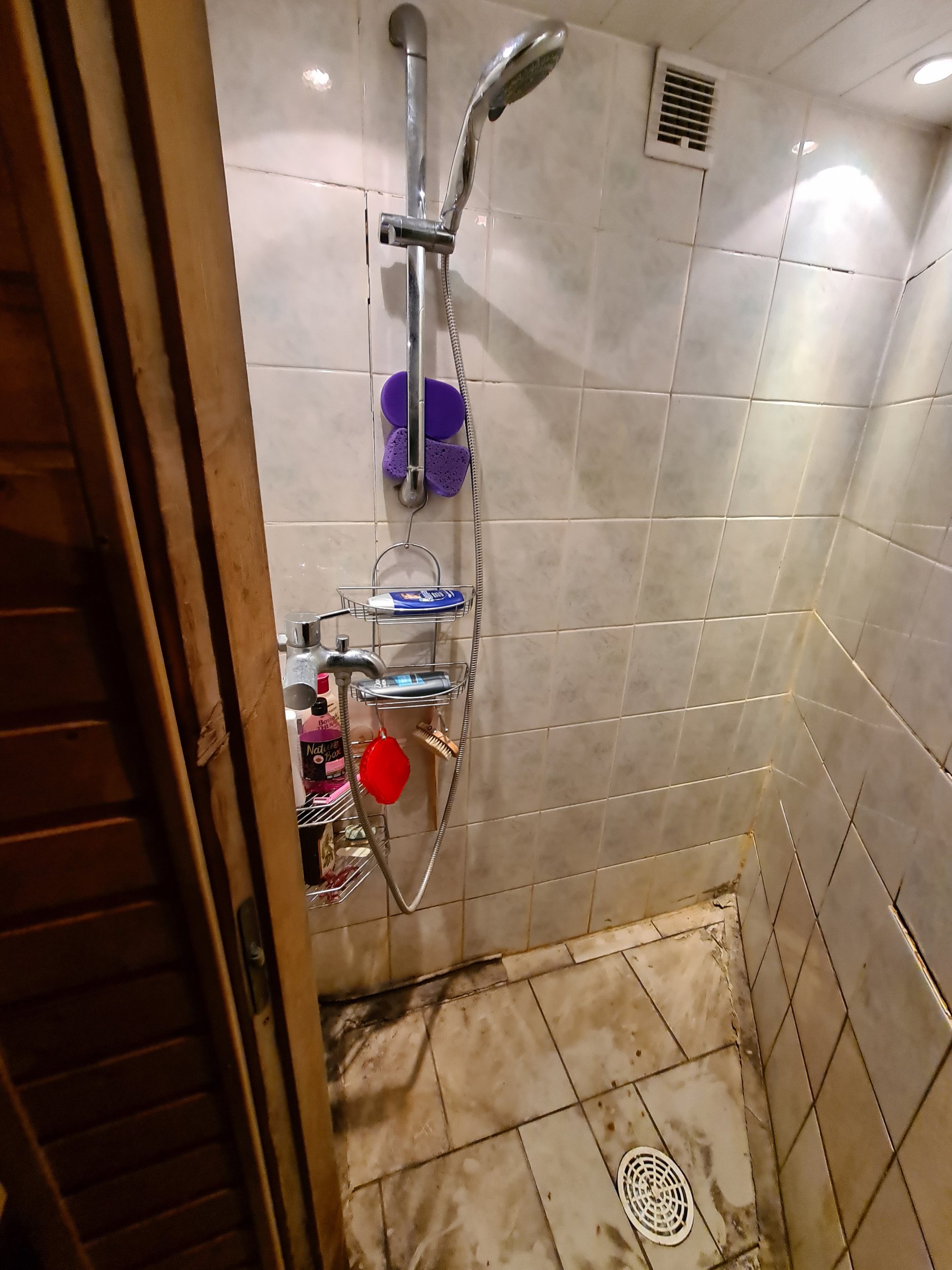 Oleks vaja saunas duširuumi seina plaadid välja vahetada. Lisaks on keegi oma aja ära elanud nii, et pool duši all kasutatavast veest lõpetab lavaruumis.