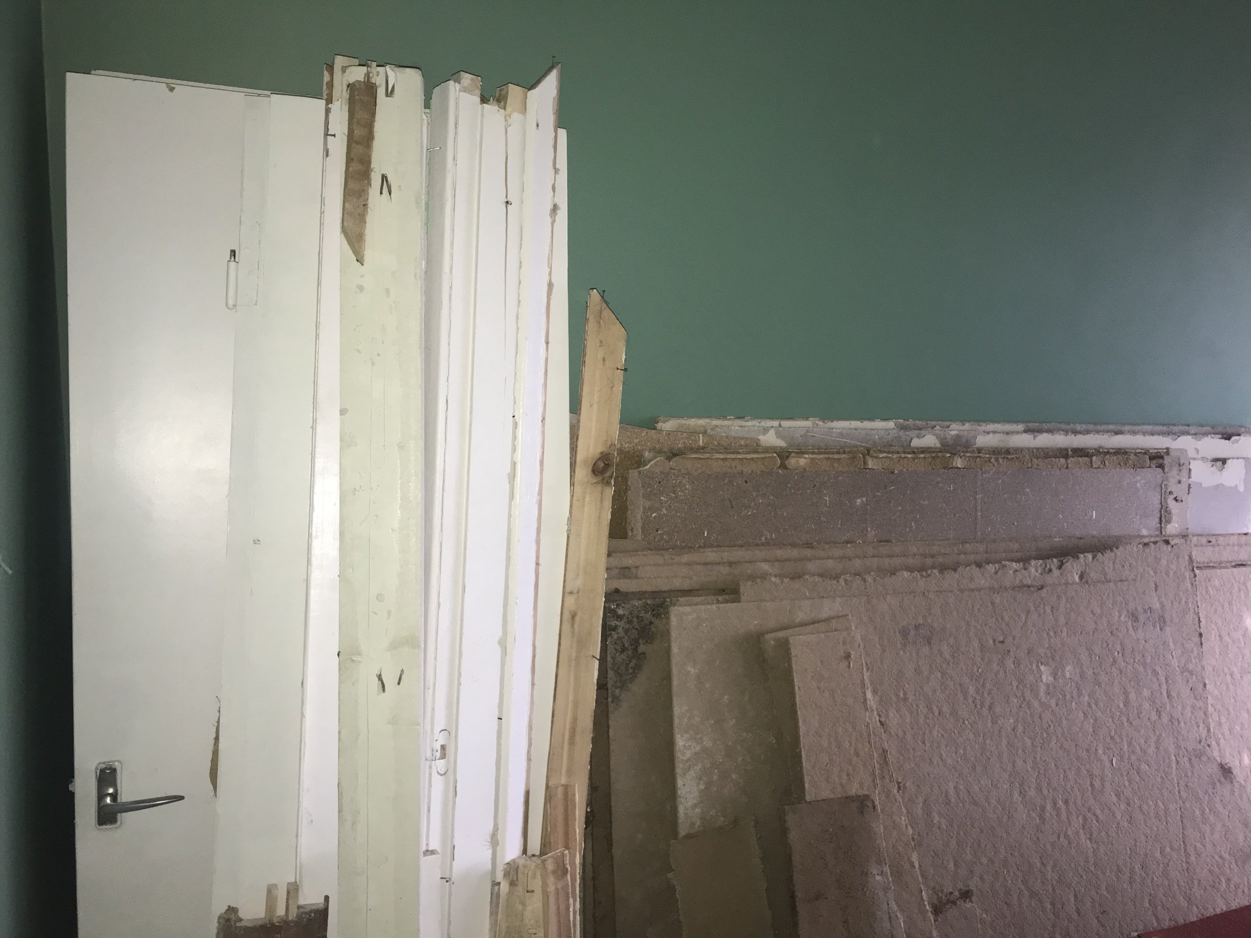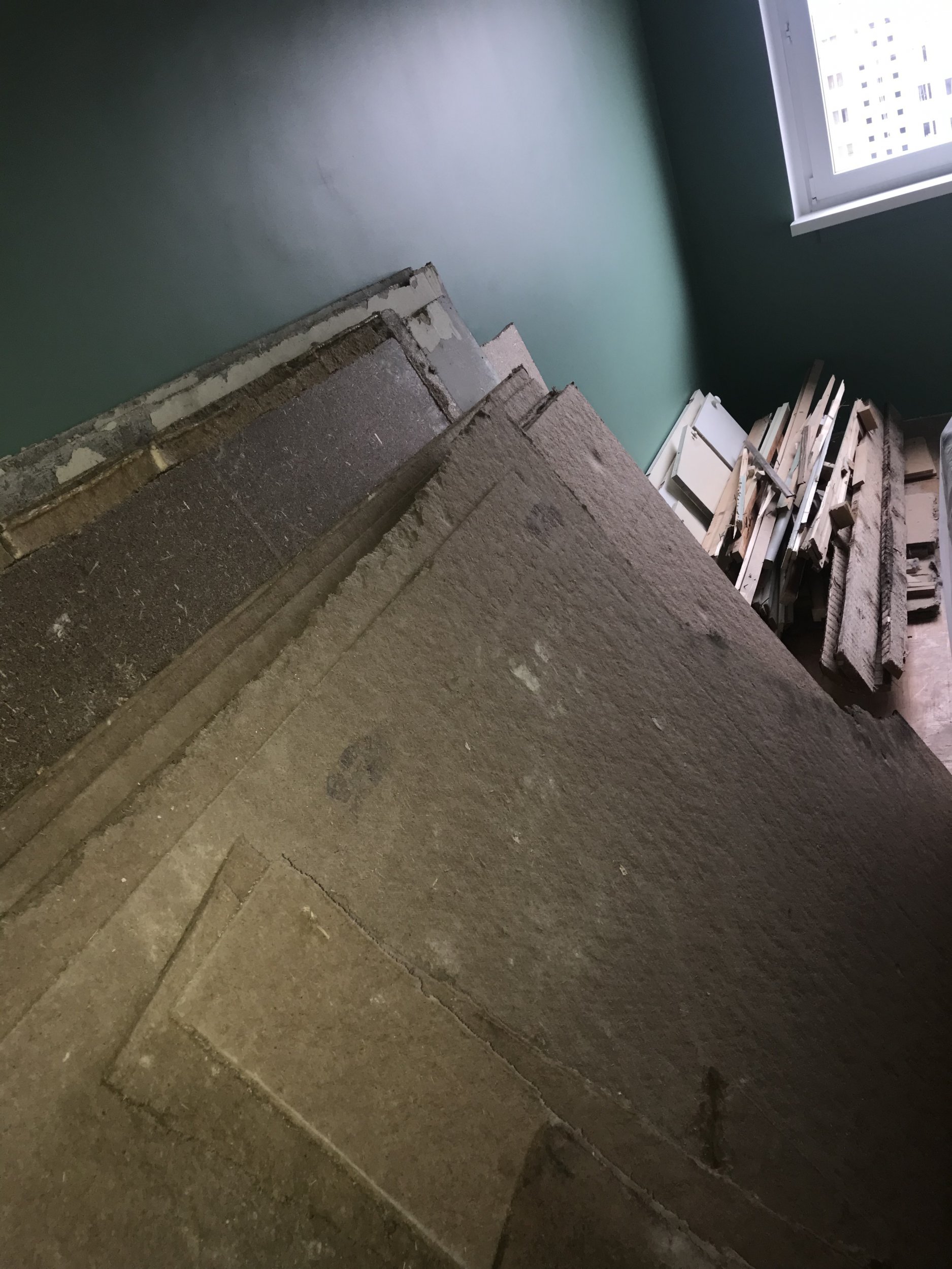 Remondi käigus korteri põrandalt ülesvõetud saepuruplaatide , sisseehitatud seinakapidetailide äraviimiseks sobivaks suuruseks saagimine ja äratoimetamine