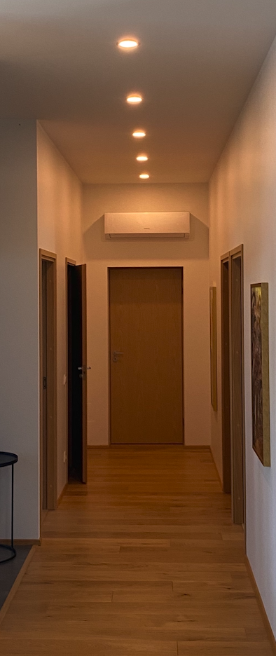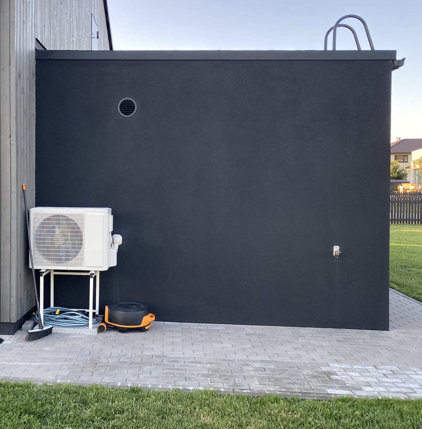 Paigaldatud on õhksoojuspump NORDCEL LOMO 6,8 kW, 1 siseosa (paigaldatud garaaži viiva ukse kohale tuppa), 1 väliosa (paigaldatud garaaži/maja taha), elektriühendus tehakse otse kilpi, kondensaatvee äravool on ühendatud väliosast teisele poole seina äravoolutrappi.