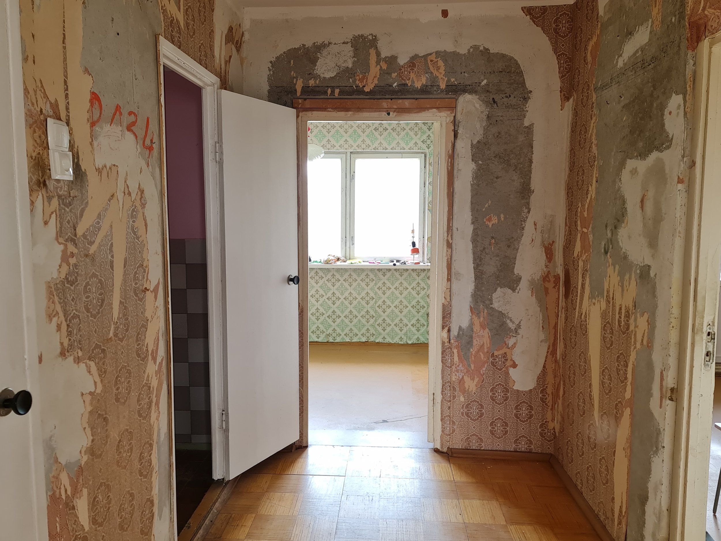 Korteri remont, v.a. vannituba. Kolme toa tapetseerimine, lagede värvimine, põrandatele laminaat. Korter on tühi ja seintelt on juba eelnevalt tapeet eemaldatud.