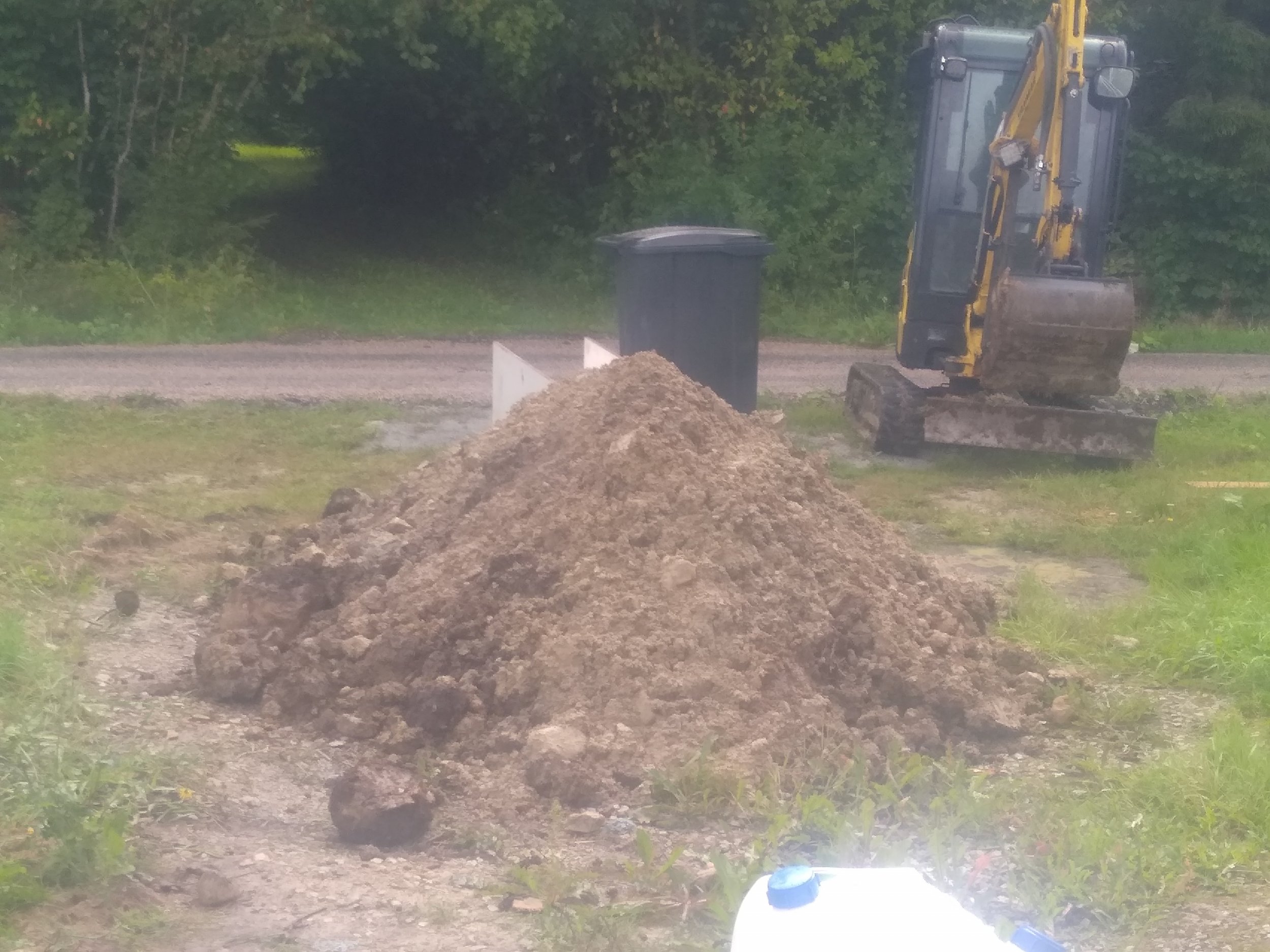 Ca 10 kuupmeetrit savi-liiva-mullasegust pinnast, sekka mõni suurem kivi, vaja utiliseerida. Pealetõstmise võimalus koha peal 2,5m. Ligipääs iga sorti vedukil.