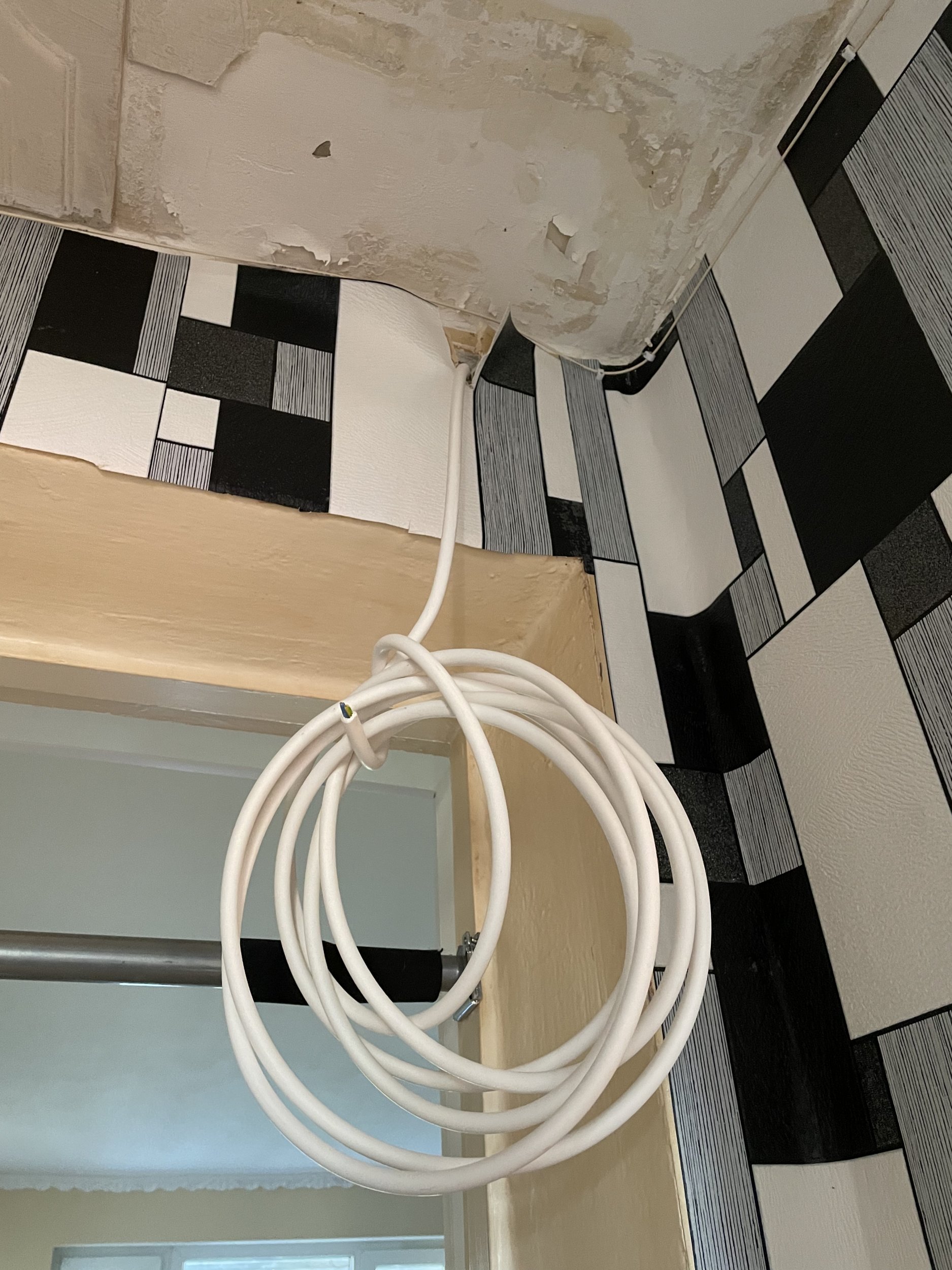 Läbi suure toa toodud juhe on hetkel sõlmena õhus.