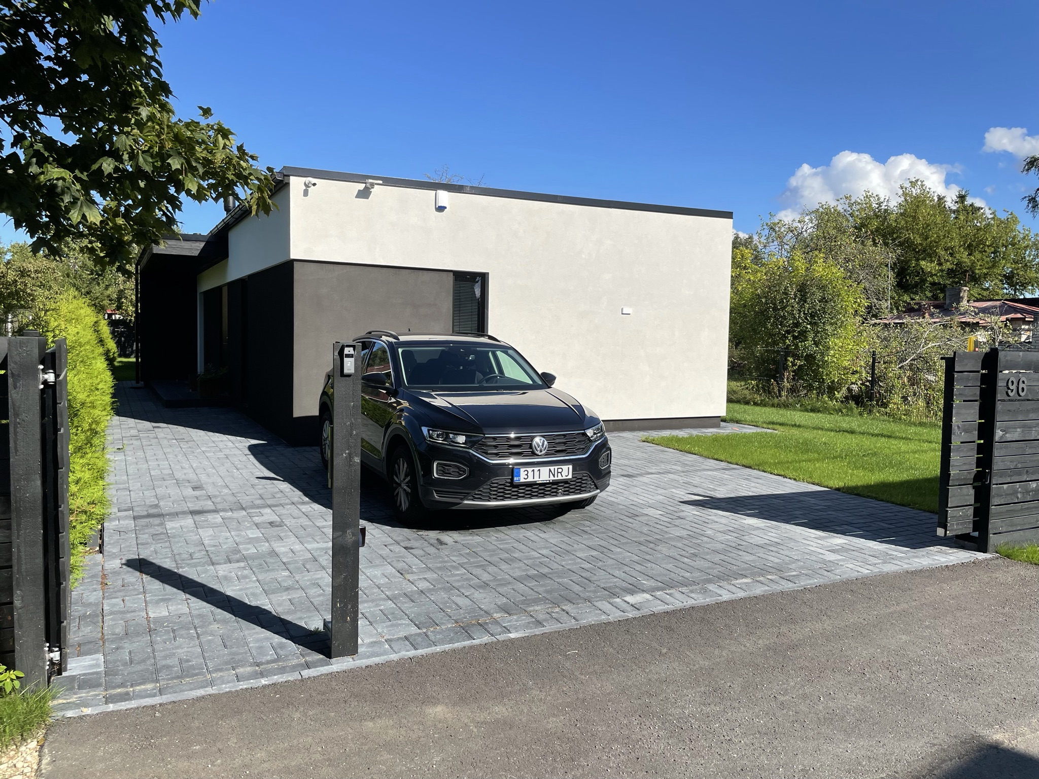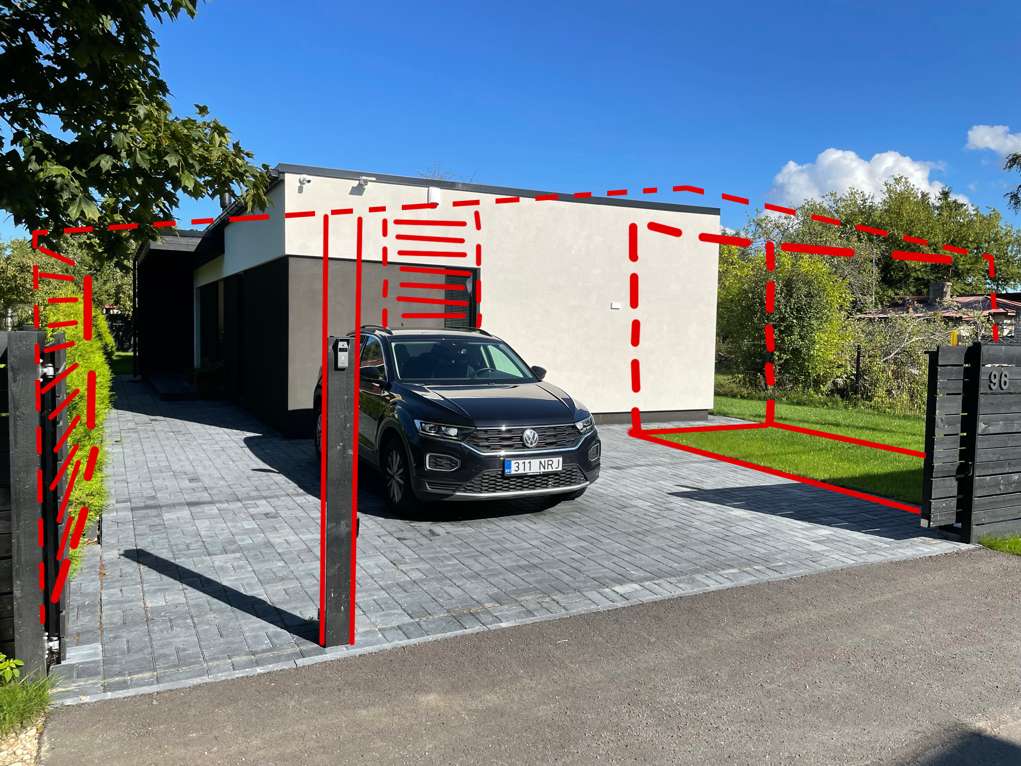 Autole varikatuse ehitamine + kuur kõrvale. Pildid proovisin teha vastavalt tegelikkusele, kuid ilmselt esineb väiksemaid vigu mõõdistustel ning tegelikkus võib olla natukene erinev. Kuurile vaja ka mingit põrandalahendust (betoon või tänavakivid või midagi kolmandat ehitaja soovitusel). Katus ei pea olema selline nagu illustratsioonil, võib olla ka lihtsalt ühele poole kaldu. Võimalusel ka elekter ja lambid sisse - maa alt olemas kõri elektrikilbist kuni kuurini. Auto katusealune võiks olla 2.5-2.7m kõrge, et oleks ka ruumi pagasiluugi avamiseks.