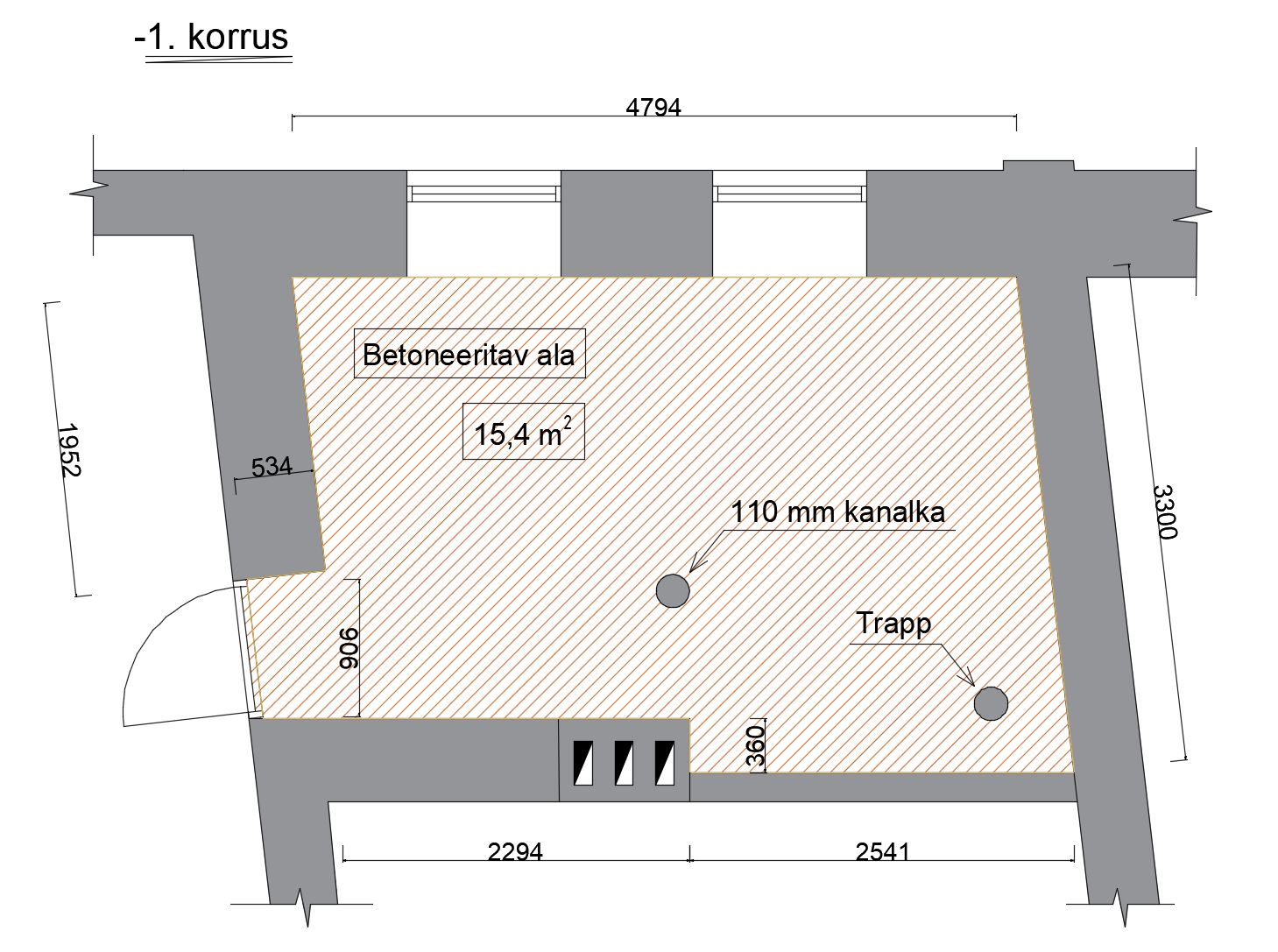 15,4 m2 betoonpõranda valamine ja järeltöö. Valu paksuseks 8 cm. Kvaliteet peab olema piisavalt hea parketi jaoks. Põrandas 1 ümmargune dušitrapp ja 110mm kanalkatoru.