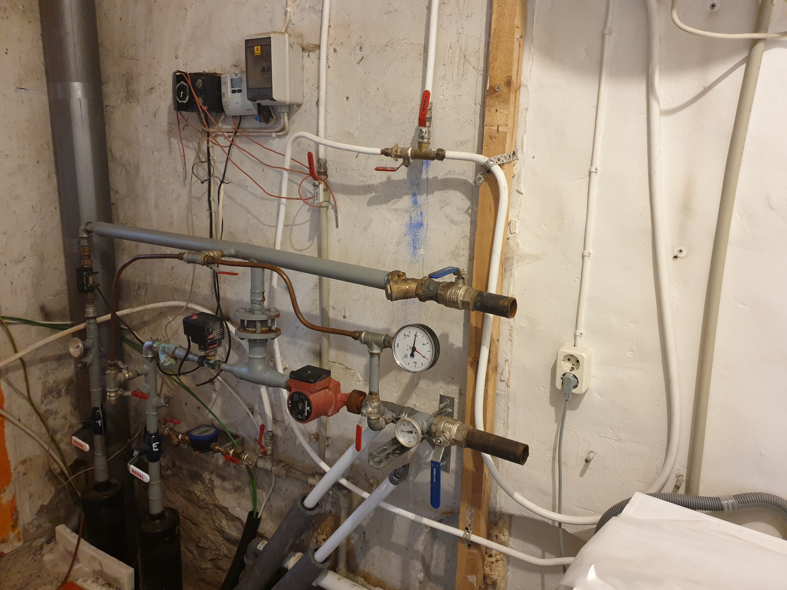 2. Ühendada põrandakütte torud kollektoritesse (kollektorite arv 2, UPONOR) ning kollektor(id) linna keskkütte külge.