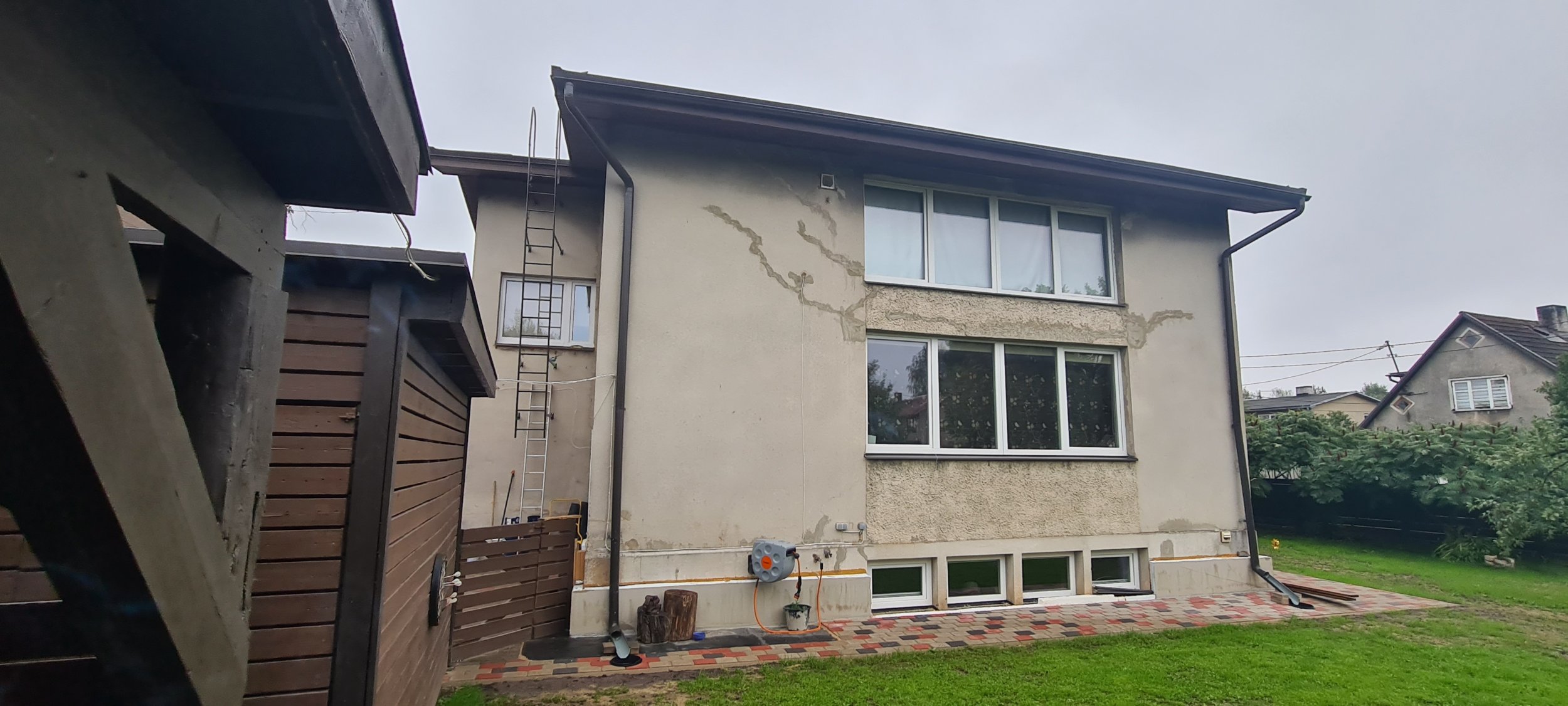 Krohvitavat Fassaadi kokku ca 200 m2 ilma avadeta. See osa majast kus terass ja rõdu läheb fassaadilaudise all. Selle töö tegija on leitud.
