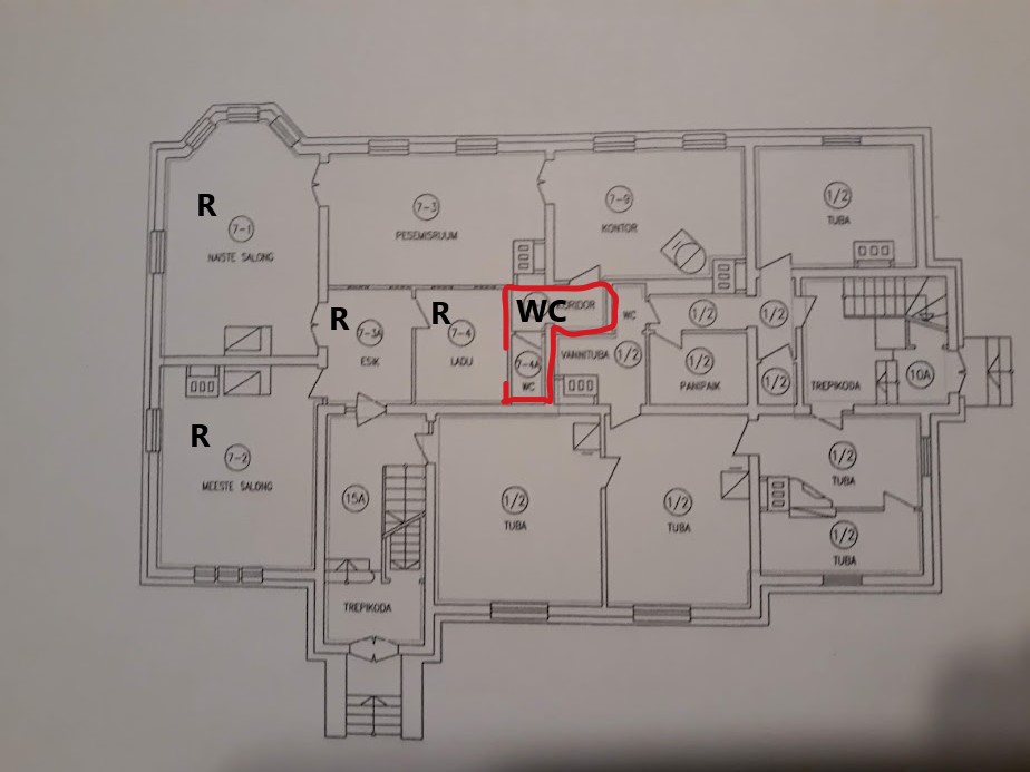 Korruse plaanil lähevad renoveerimisse krt 7 kõik ruumid v.a 7-3 ja 7-9