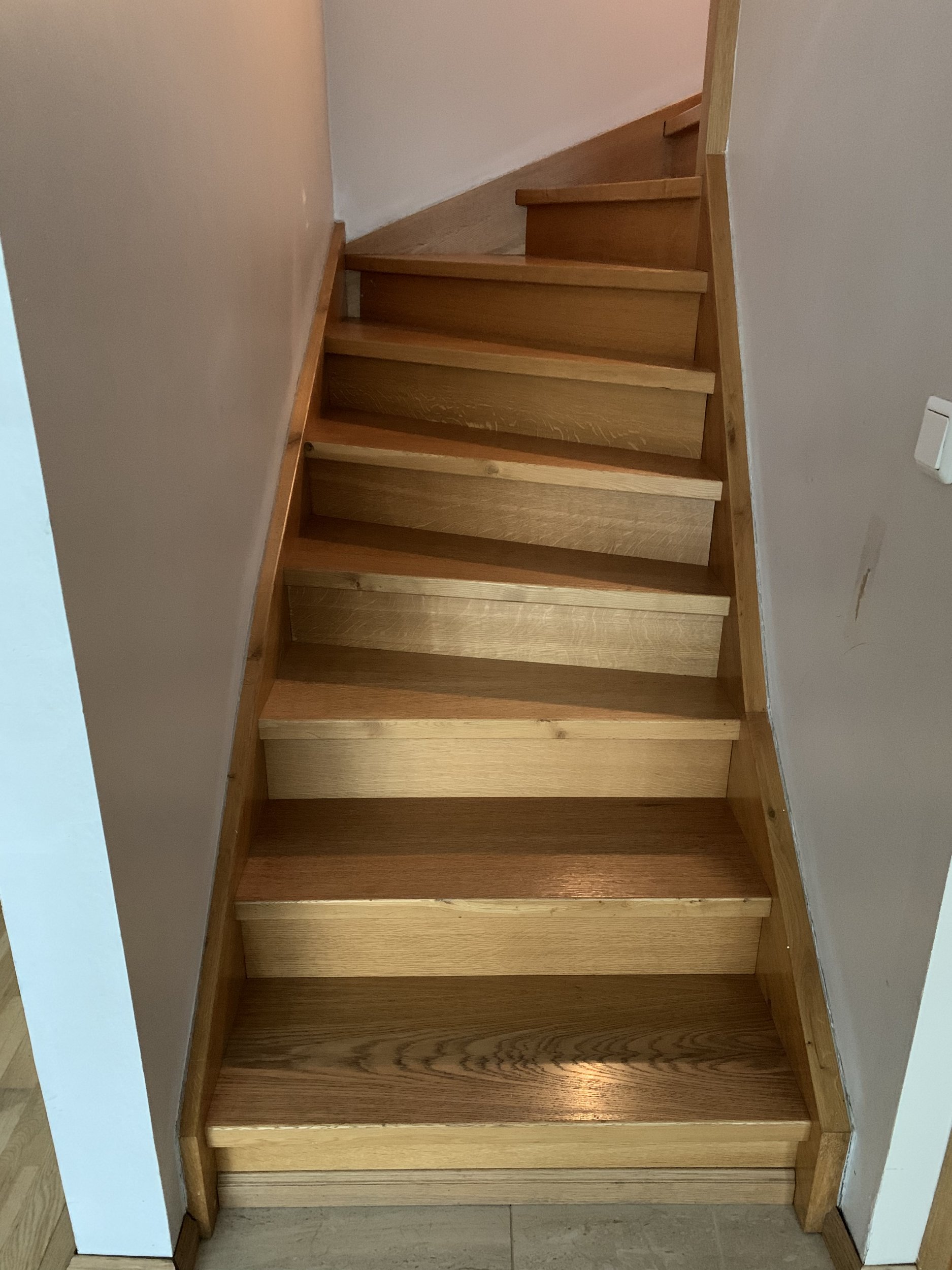 Vaja oleks vana trepp üle lihvida ja töödelda nii, et see sobiks kokku ue parketi ja ustega. Kokku 16 astet. Puiduks tamm. Fotona lisatud ka soovitud tulemus.