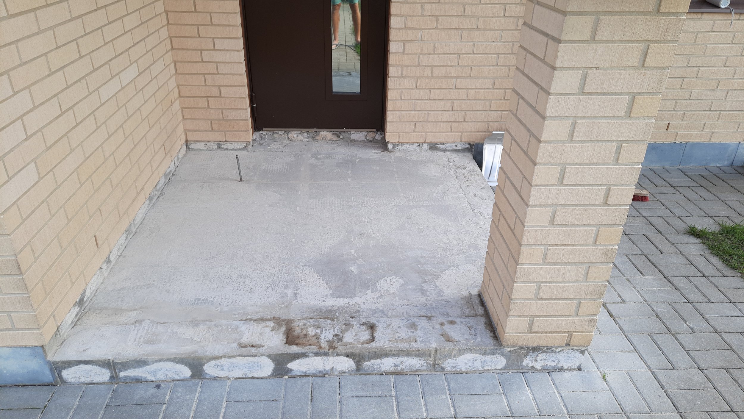 Töö sisuks on välistingimustes uksealuse mademe plaatimine ja vuukimine ca. 4,5 m2