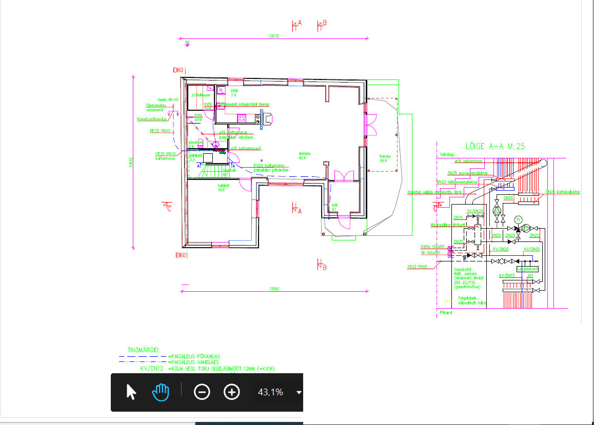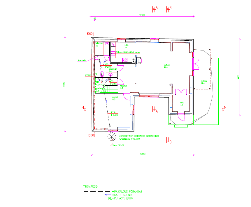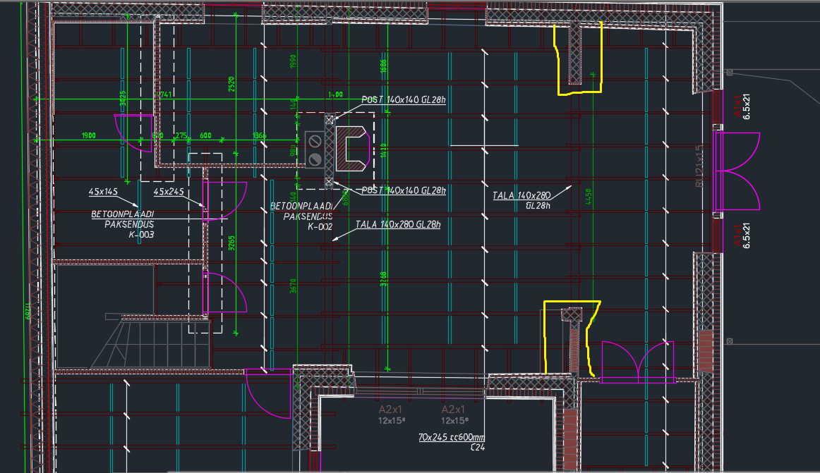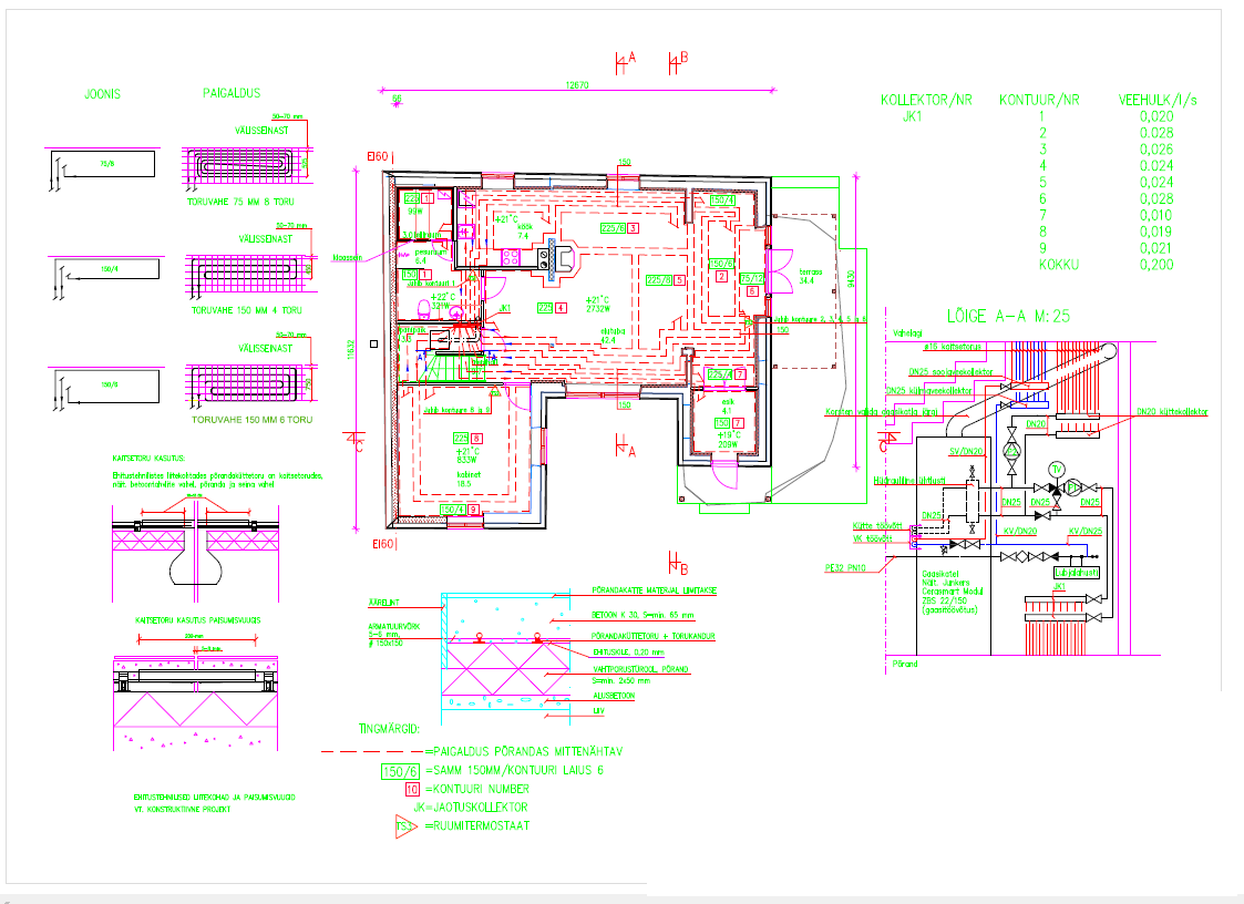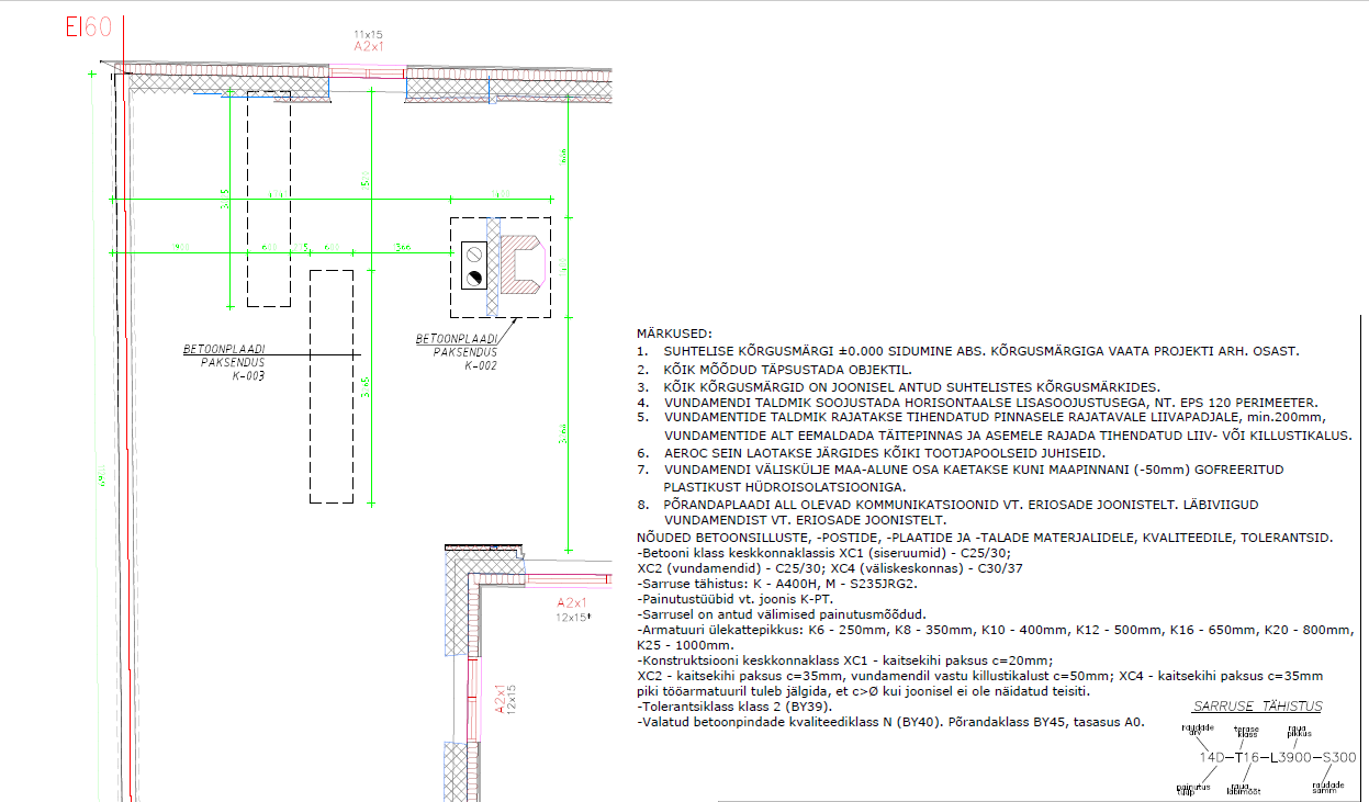 • Raudbetoonplaat S= min 65 mm(uus raudbetoonpõrand pinnasel, betoon C25/30, põrandad