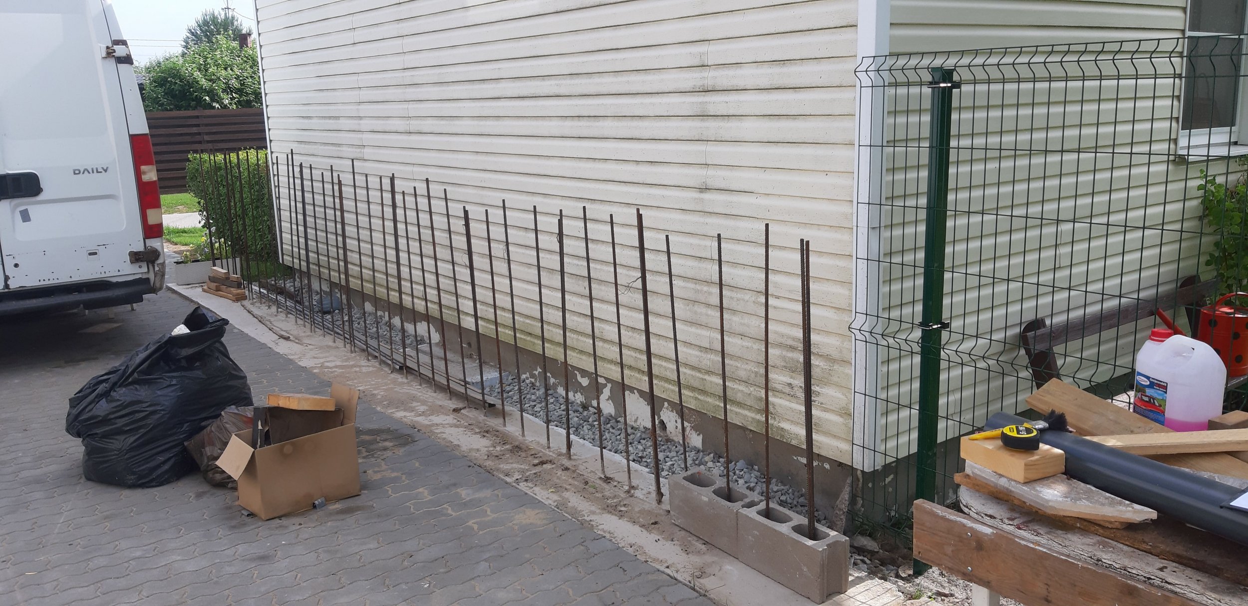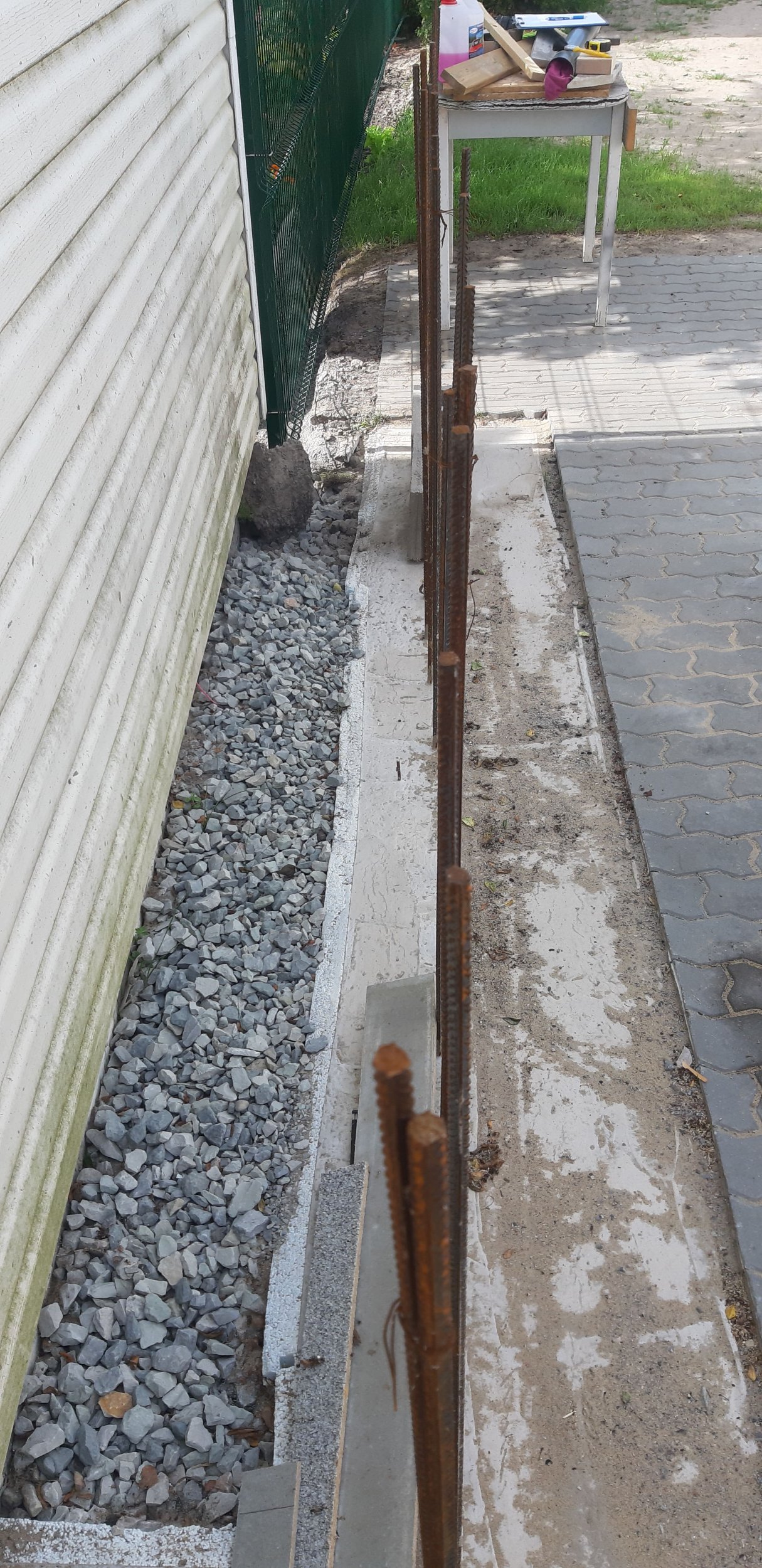 Iga kuue rea tagant täidame plokid betooniga. Seda tööd teeme ise.