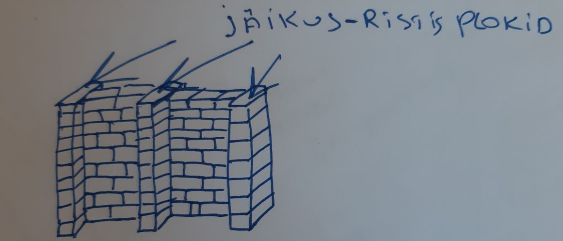 Seinal on kolm jäikusriba, ehk plokid lähevad risti ja neid tuleb saagida vertikaalselt.