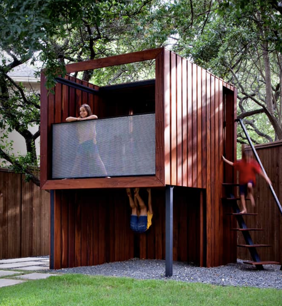 Laste puumaja ehitus. Puidust. Maja on puu peal 2m korgus. Naidis, pildides.