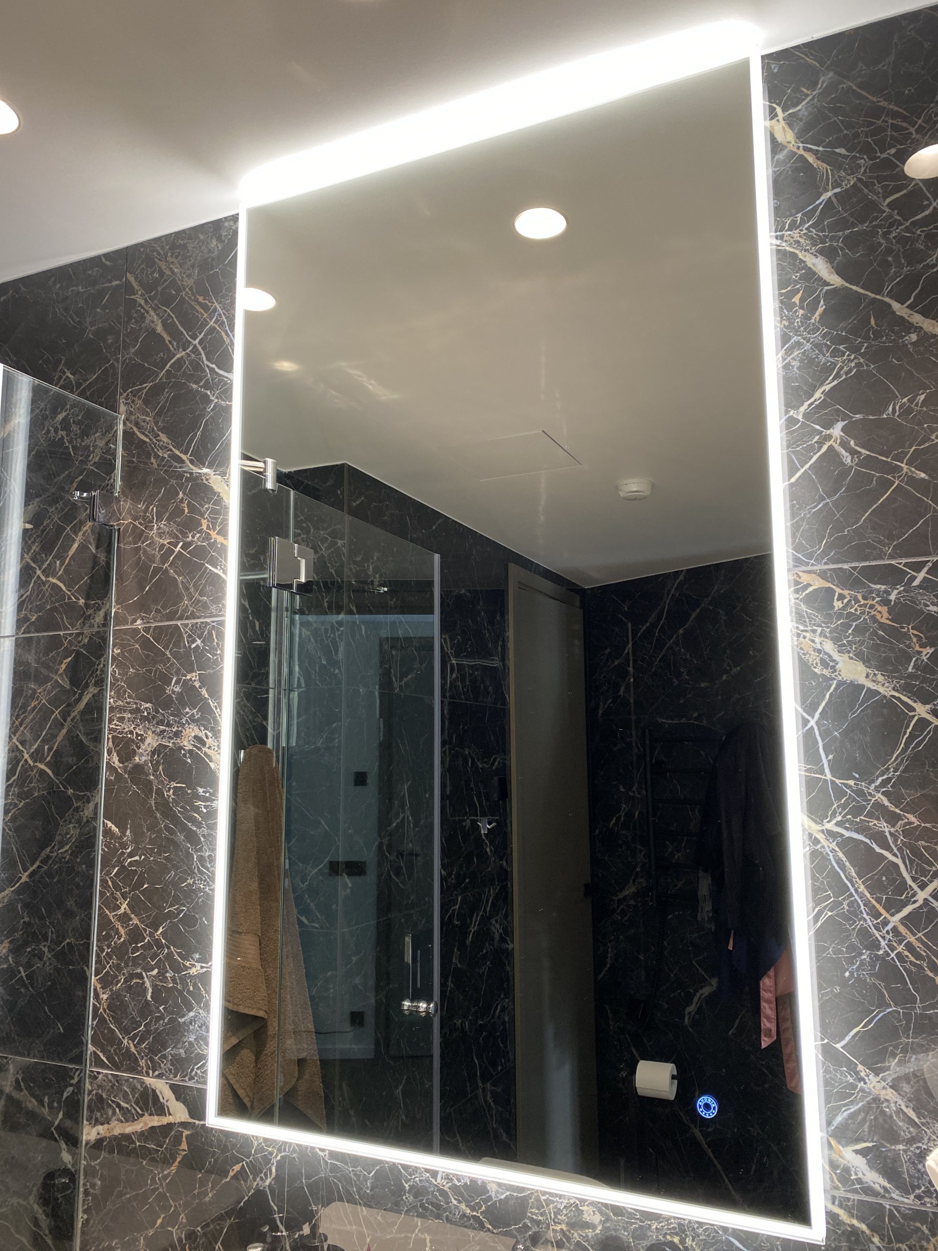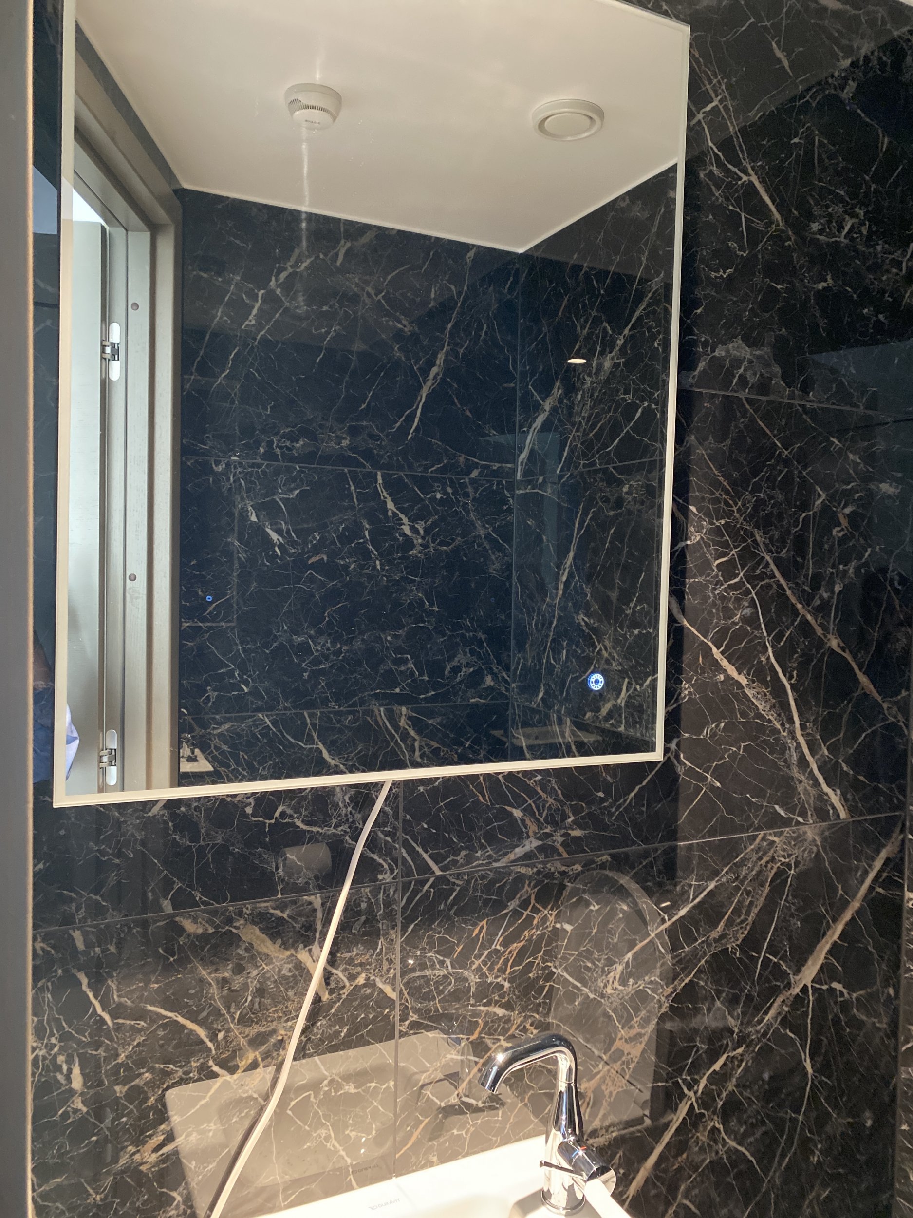 Vannitoas on peegel seinas, oleks vaja allapoole seda tõsta ja paigaldada ning valge juhe musta vastu vahetada. Teises vannitoas samuti peegel allapoole tõsta.