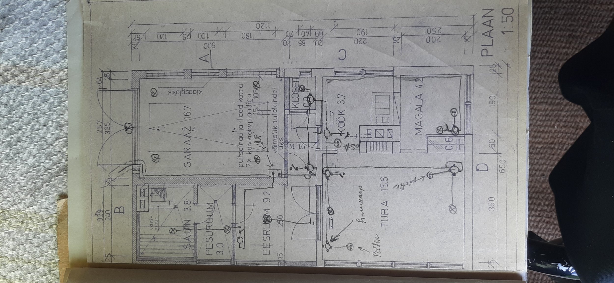 Olemasolevale aiamajale oleks vaja teha projekt. Hoones sees garaažist uus tuba, sauna osast samuti tuba.