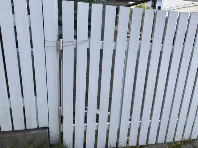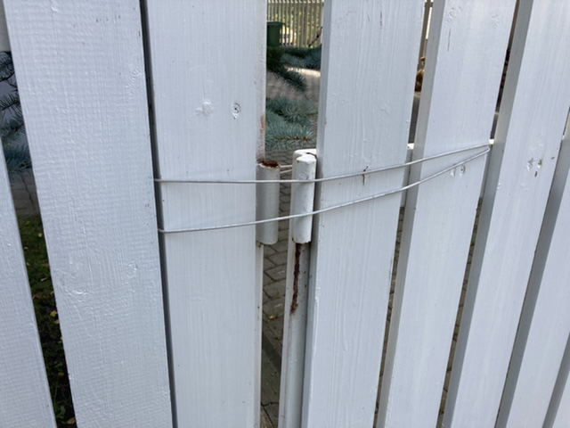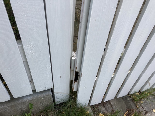 Eemaldada vanad murdunud hinged ja keevitada uued keevishinged (2 tk) aiaposti ja väravaraami külge. Keevishinged tellijal olemas, muu töö teostaja poolt. Valgeks värvida pole vaja.