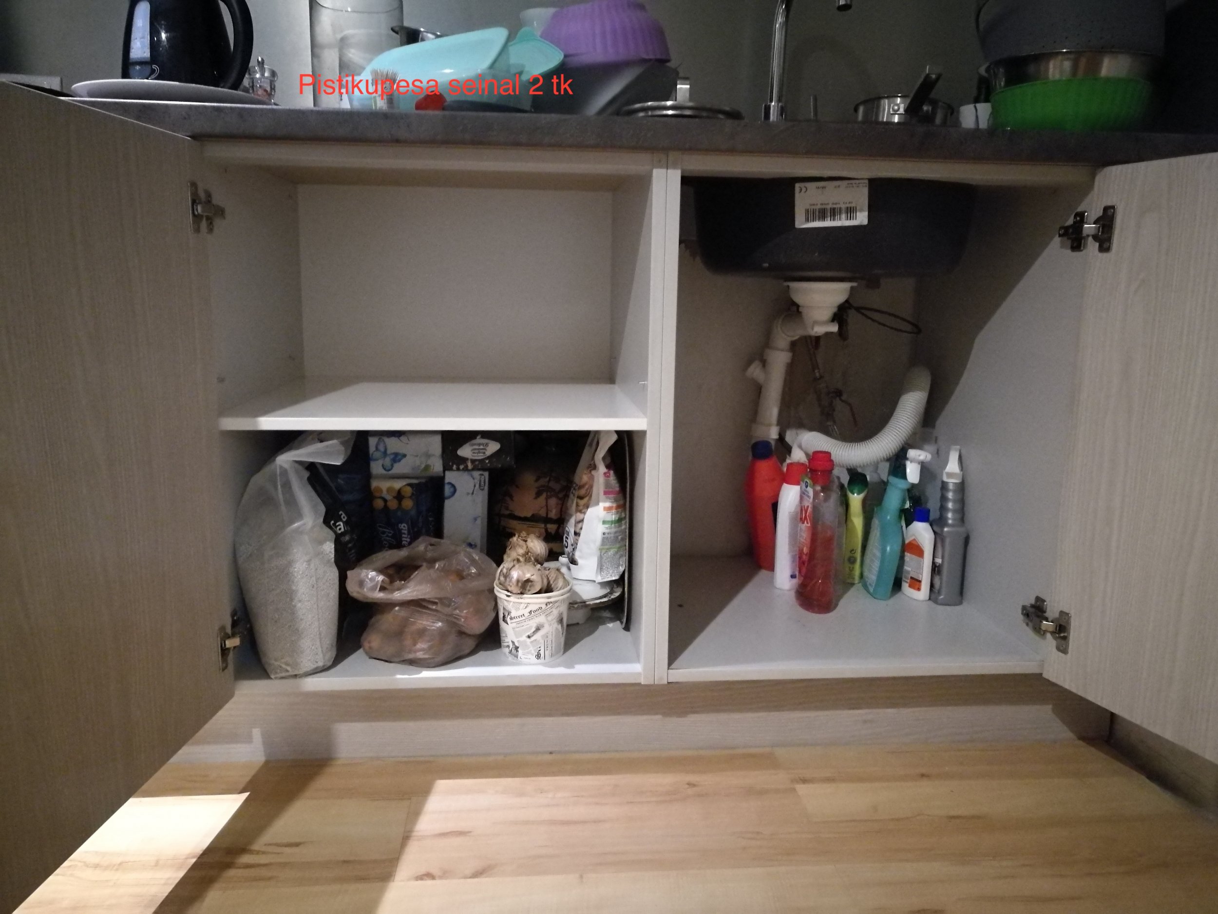 Köögimööblil on nõudemasina koha peal ees riiulid ja kapi põhi, need tuleb paigaldajal ise eemaldada. Ühtlasi tuleks paigaldajal hiljem kapiuks nõudepesumasina ette paigaldada.