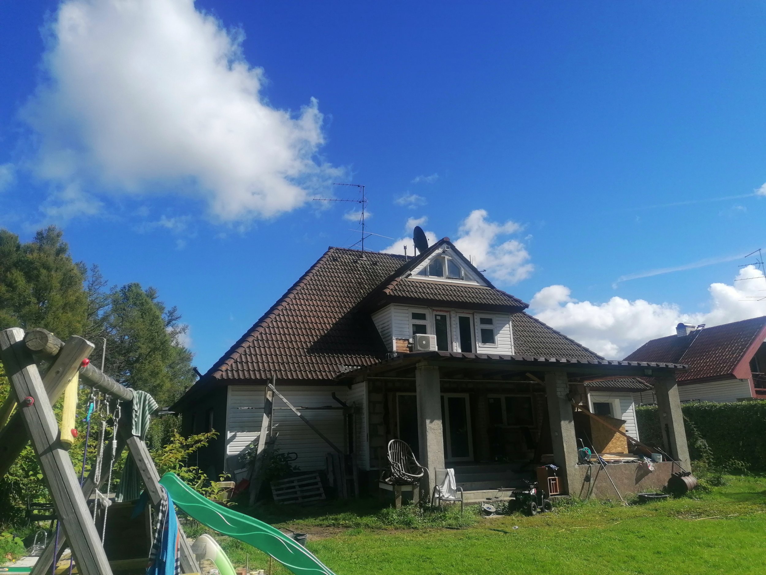 Katus vajab uuendus/parandustöid. Osadest kohtadest on vesi kahjustanud aluskonstruktsiooni. Tuulekastid tuleks lahti võtta ja vaadata täpsemalt mis vahetust vajab. Näha on mõnest lahti võetud kohast tala otste pehkimist. Katusel olevad antennid tuleks kõrvaldada koos läbiviikudega.ahelate taladel esimese korruse tuhaplokkide ja talade vahel on suured vahed mis tuleks täita ja külg soojustada, et hiired ei saaks vahele. Katusele tuleks teostada puhastus/pesu. Võiks olla kirjas ka umbkaudse tööde maksumuse kogu projektile. Täpsustavad küsimused oodatud.